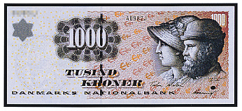 1000クローネ 肖像はミカエル・アンカー(右)、アンナ・アンカー(左)