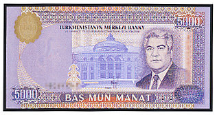 5000マナト 肖像はニアゾフ大統領