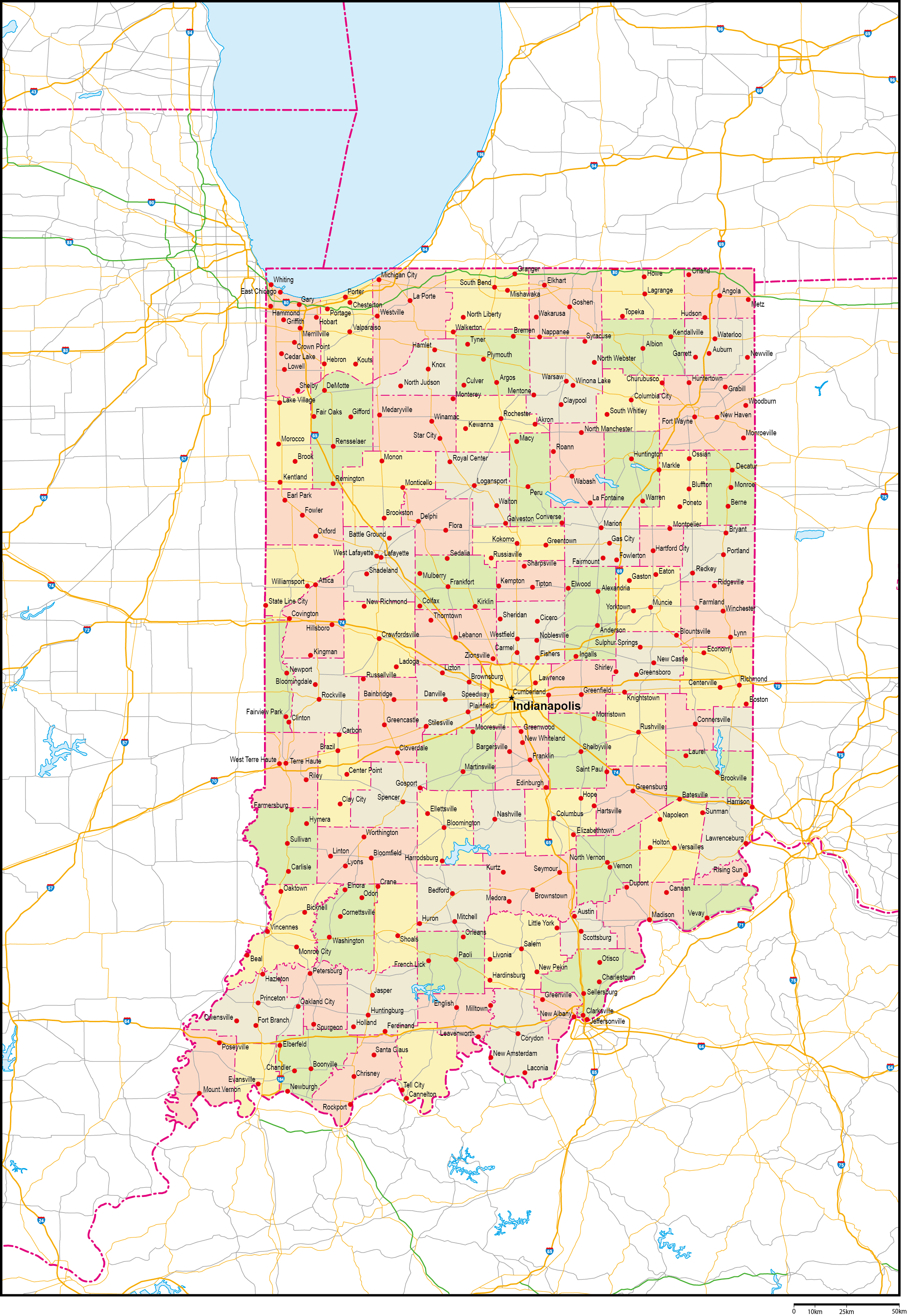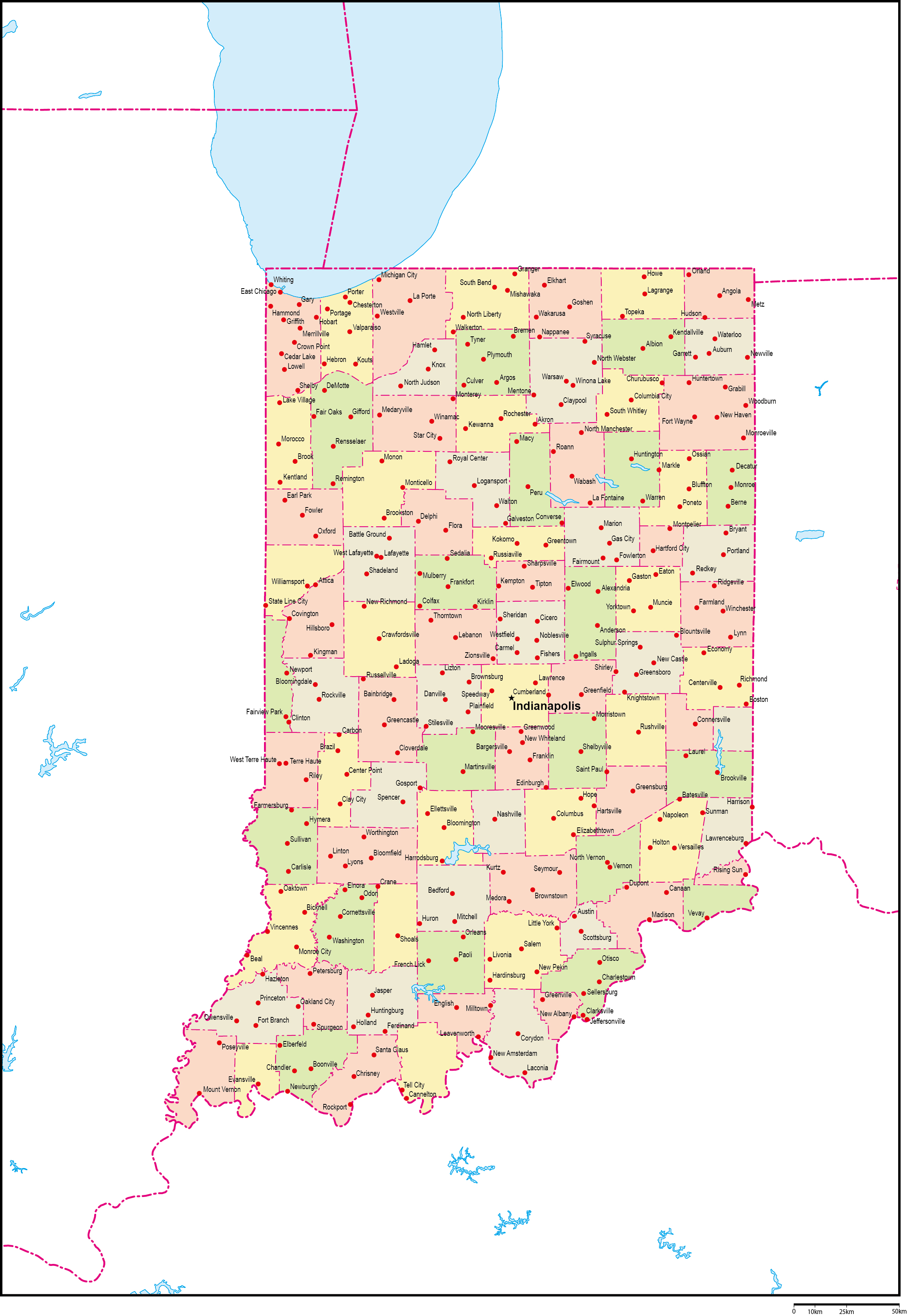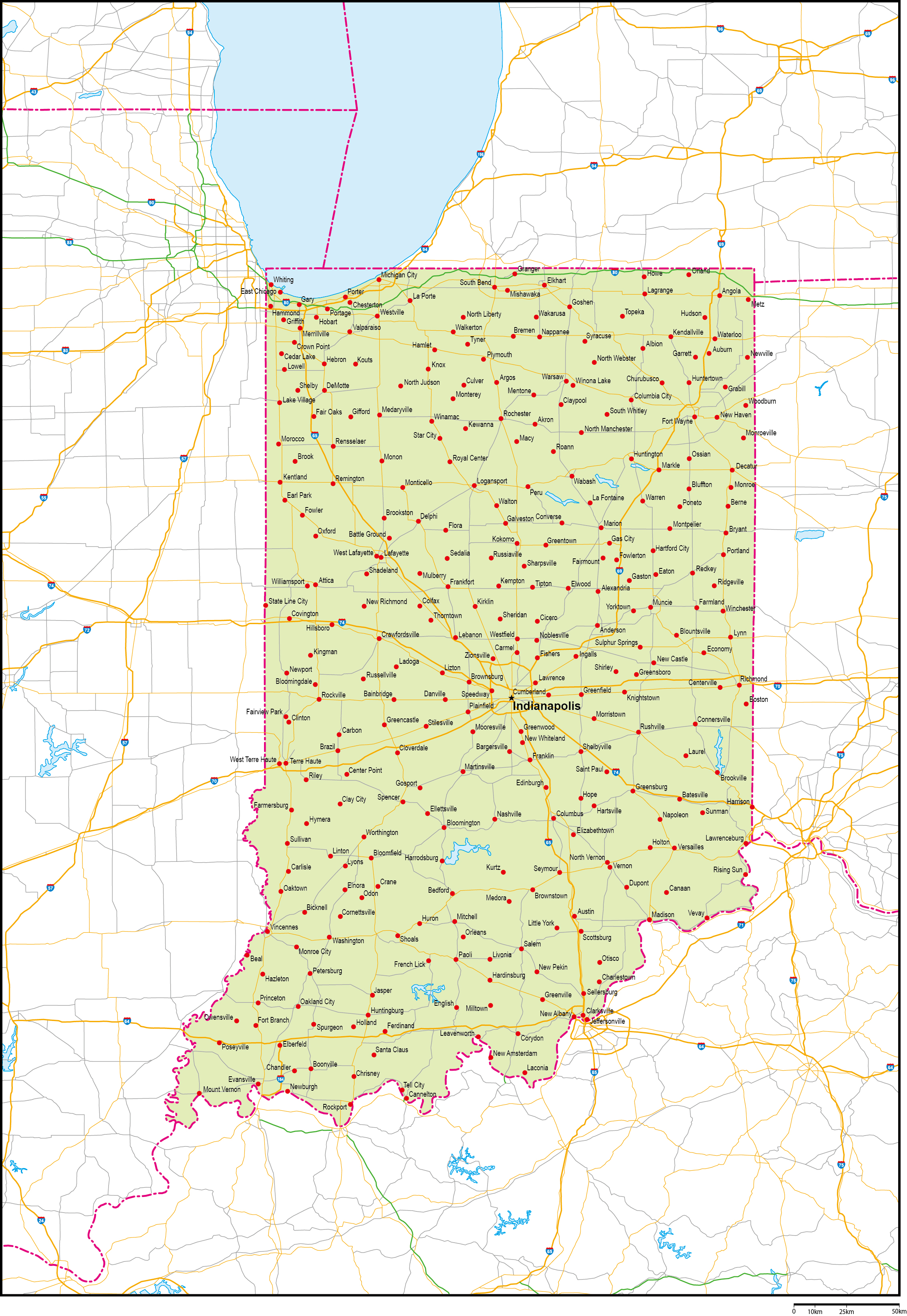 | 主要都市 | アンディアナポリス、フォートウェーン、エバンスビル、サウスベンド、ゲーリ |