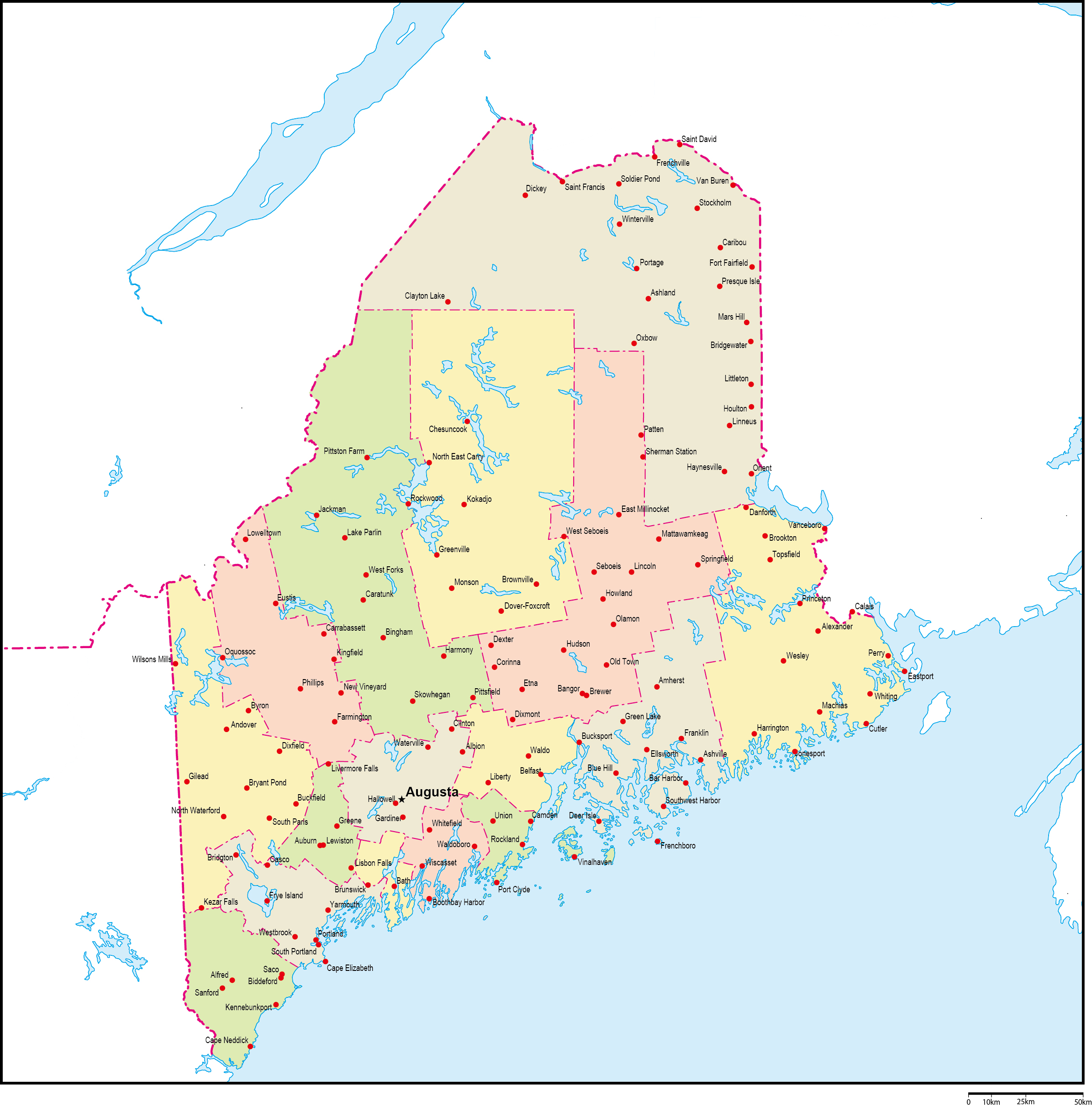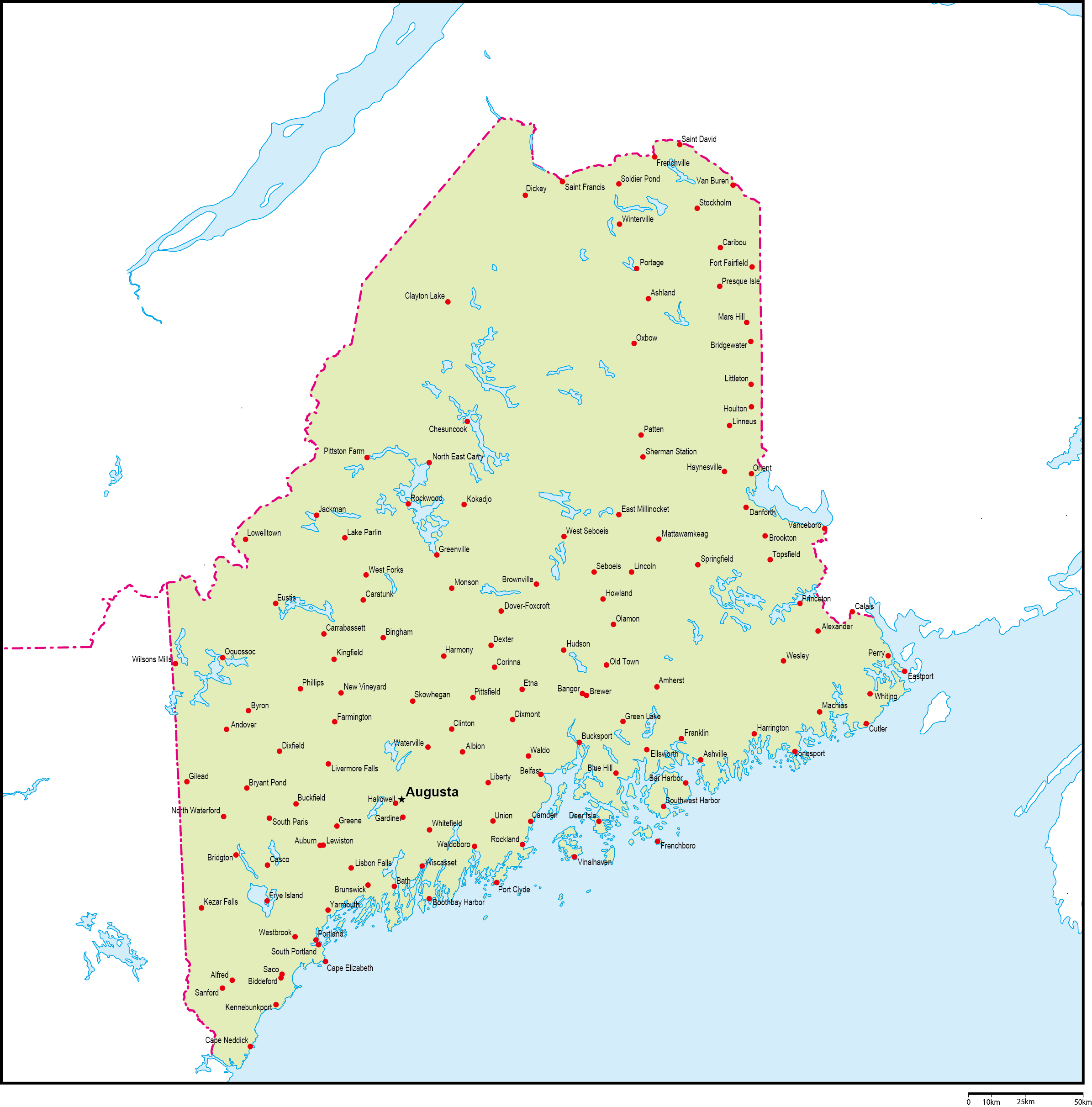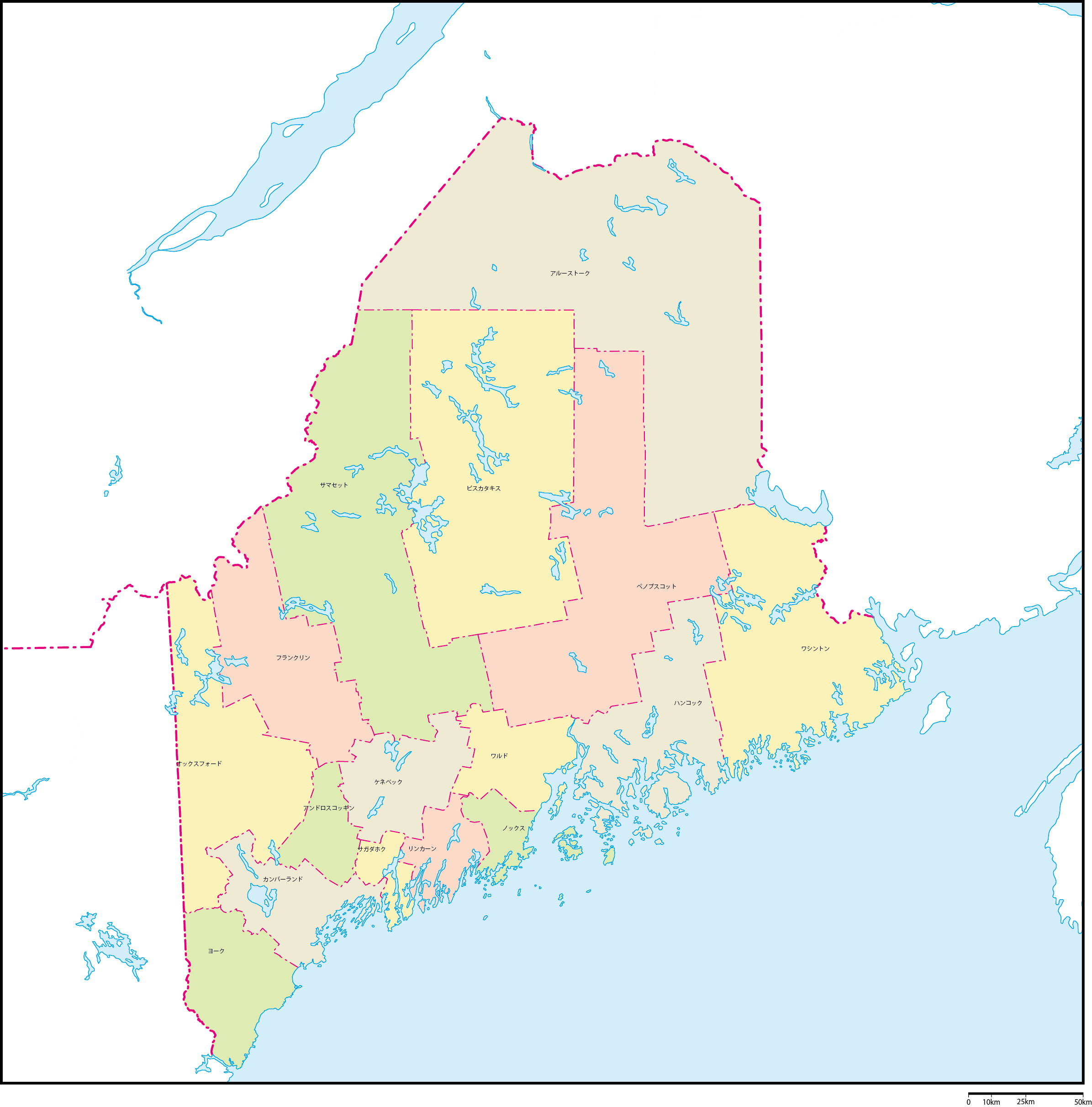 | 主要都市 | ポートランド、ルーイストン、バンガー、サウスポートランド、オーバーン、オーガスタ |