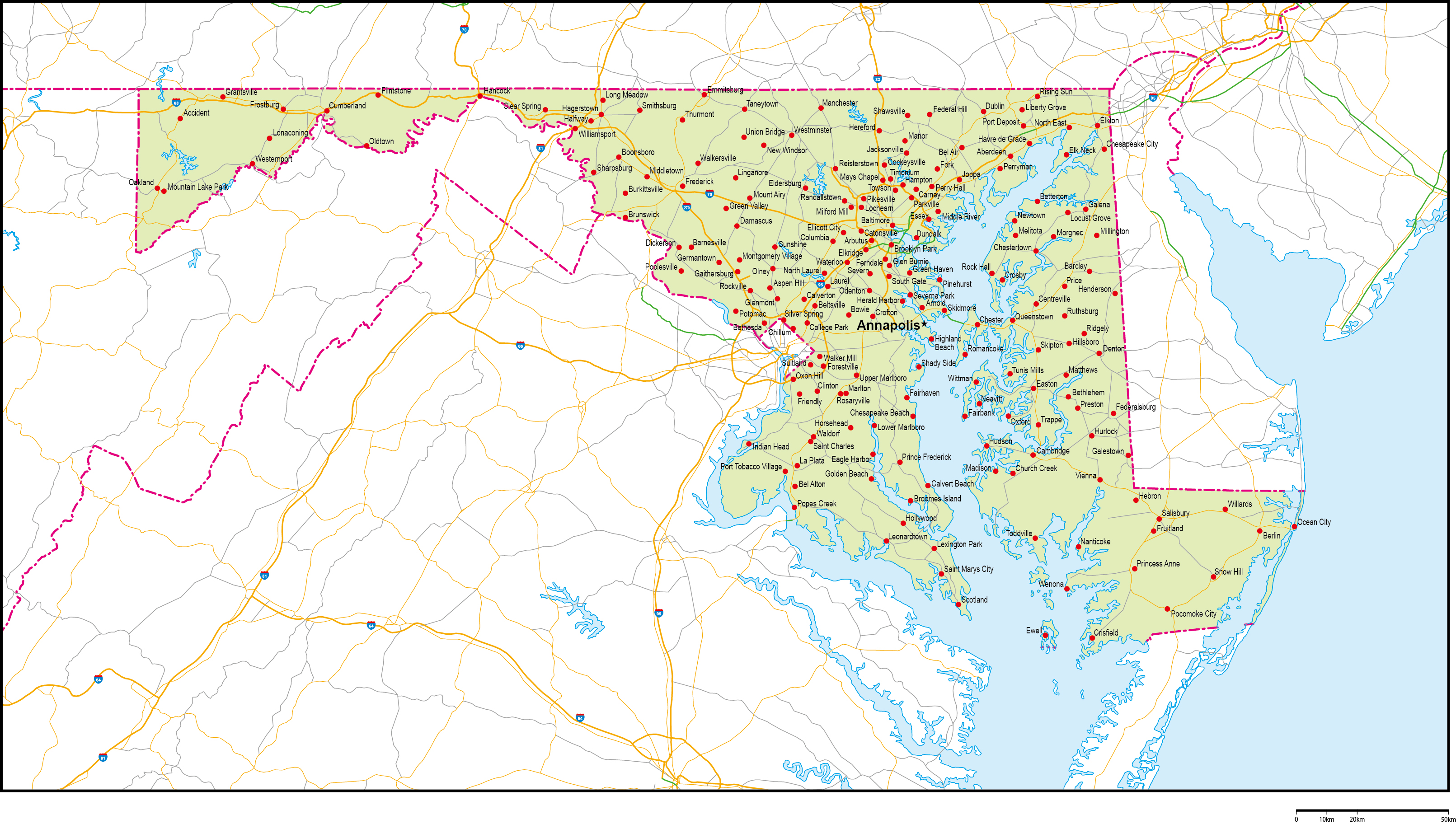 | 主要都市 | ボルティモア、コロンビア、シルバースプリングス、ダンダルク、エリコットシティ、アナポリス |