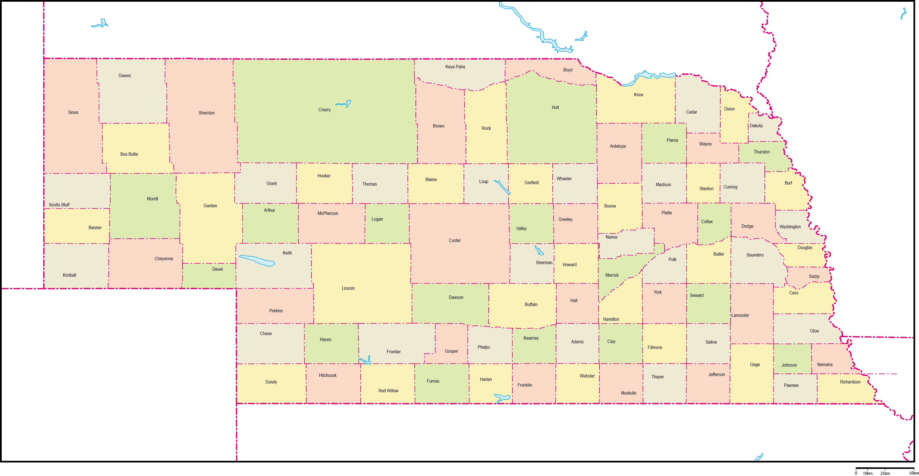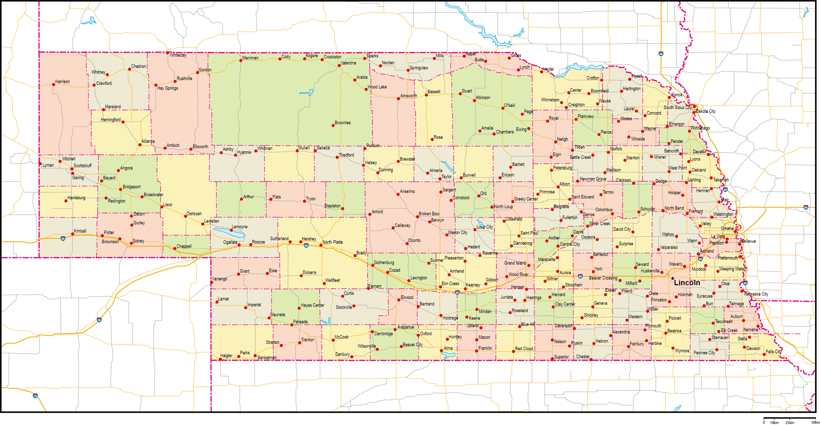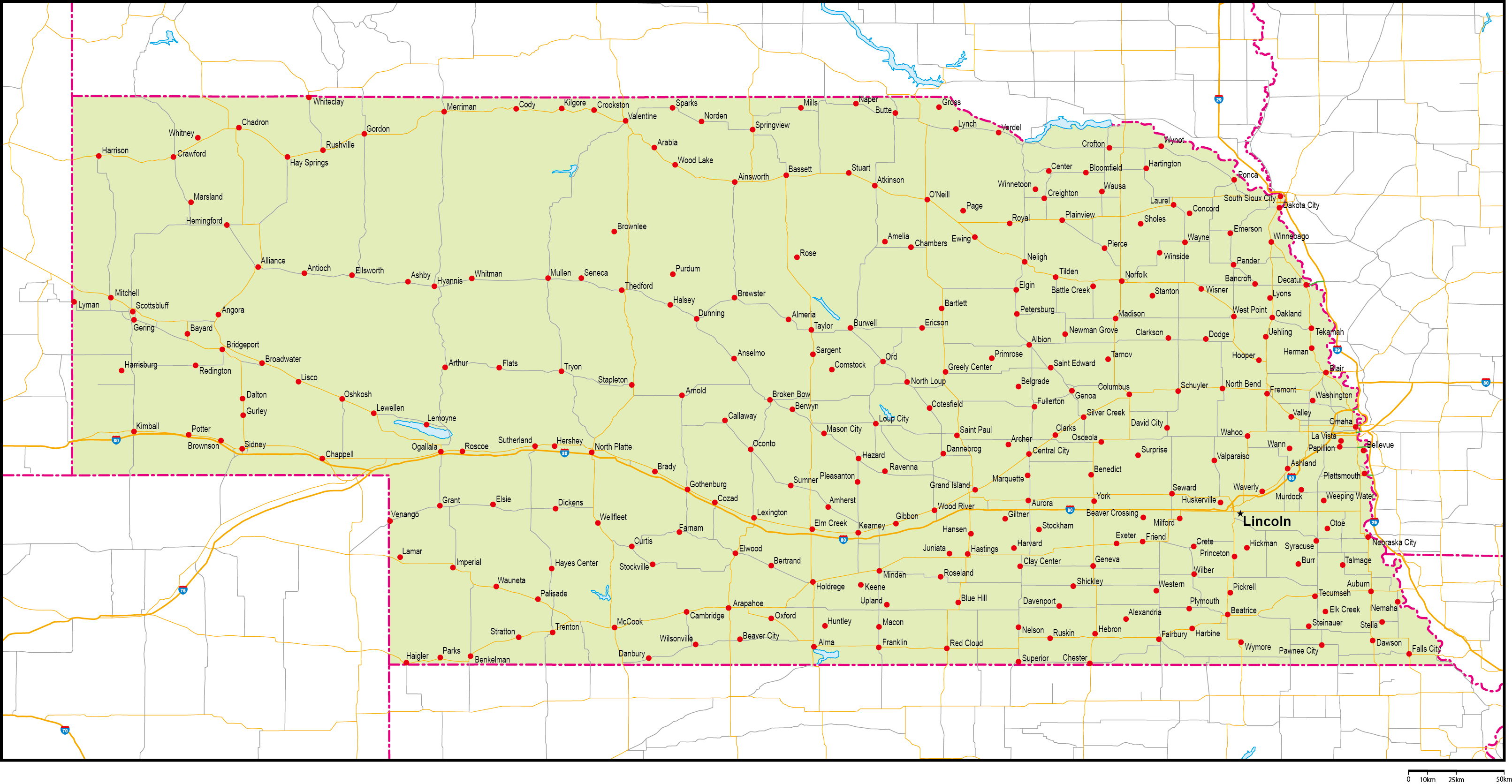 1867年、37番目の州として合衆国に参加した「ネブラスカ州」は、アメリカのほぼ中央部に位置しています。西部劇で見るような広大な原野が広がる土地であり、州のほとんどを「グレートプレーン(大平原)」が占めています。