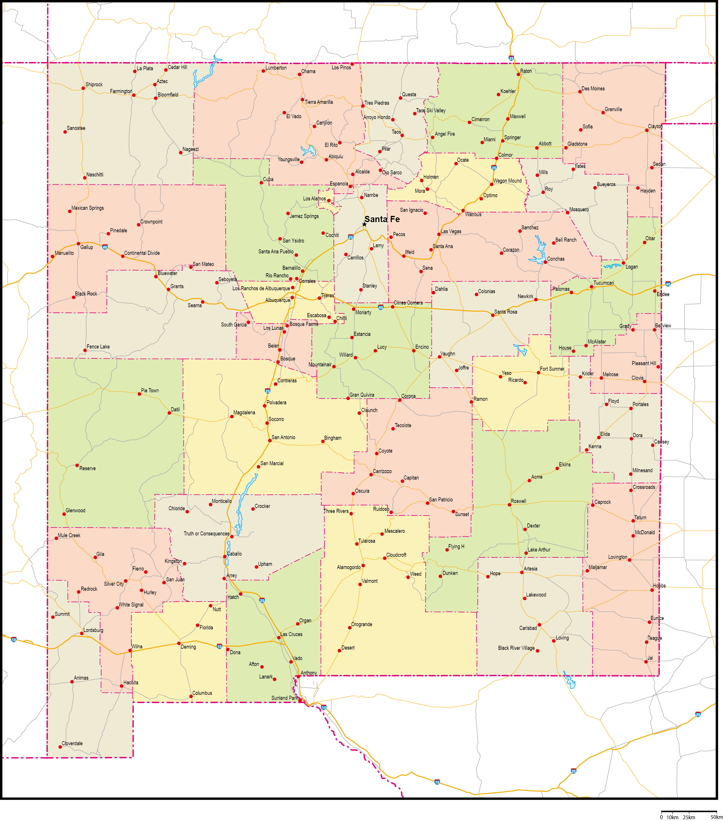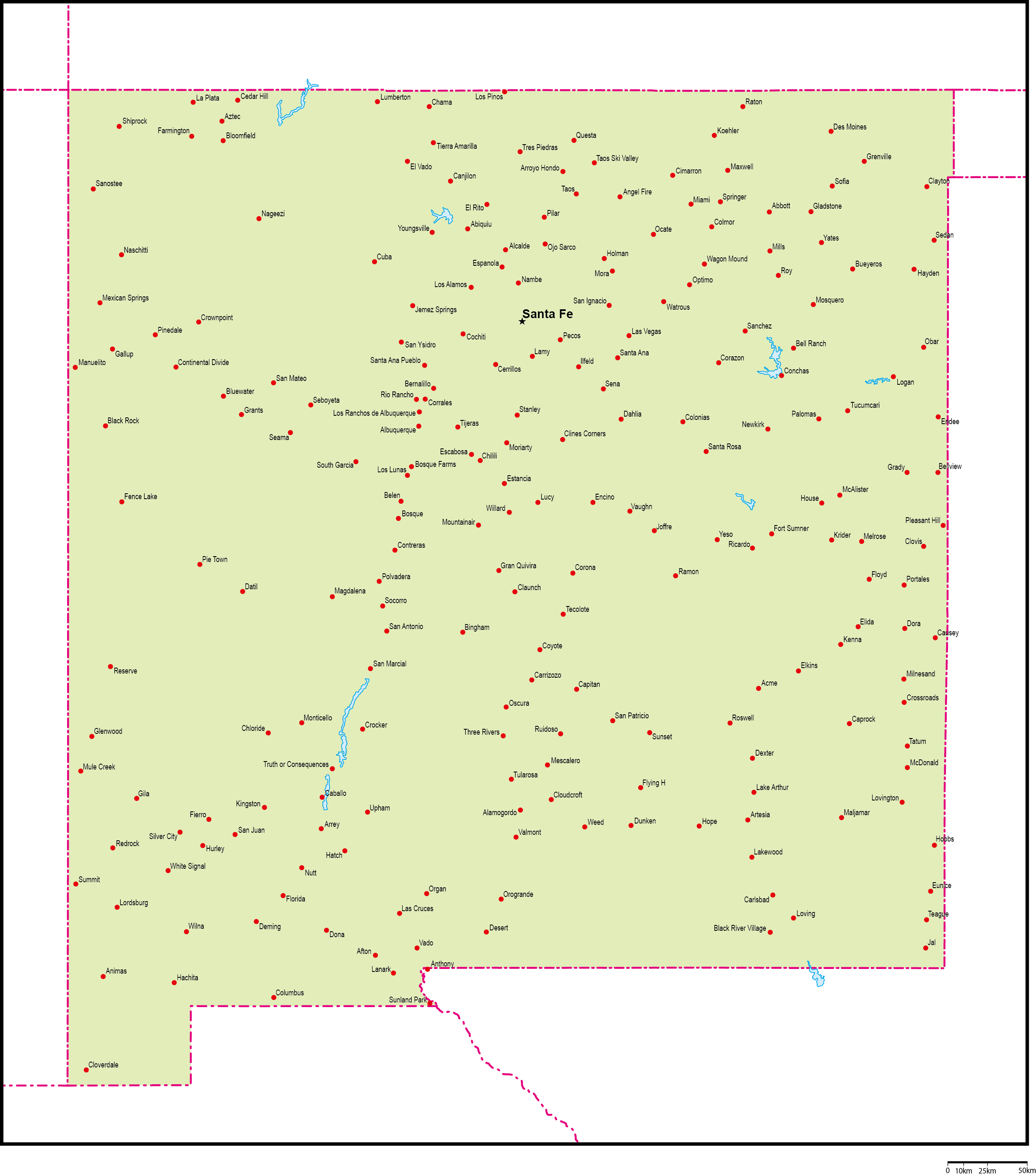 | 主要都市 | アルバカーキ、ラスクルーセス、サンタフェ、リオランチョー、ロズウェル |