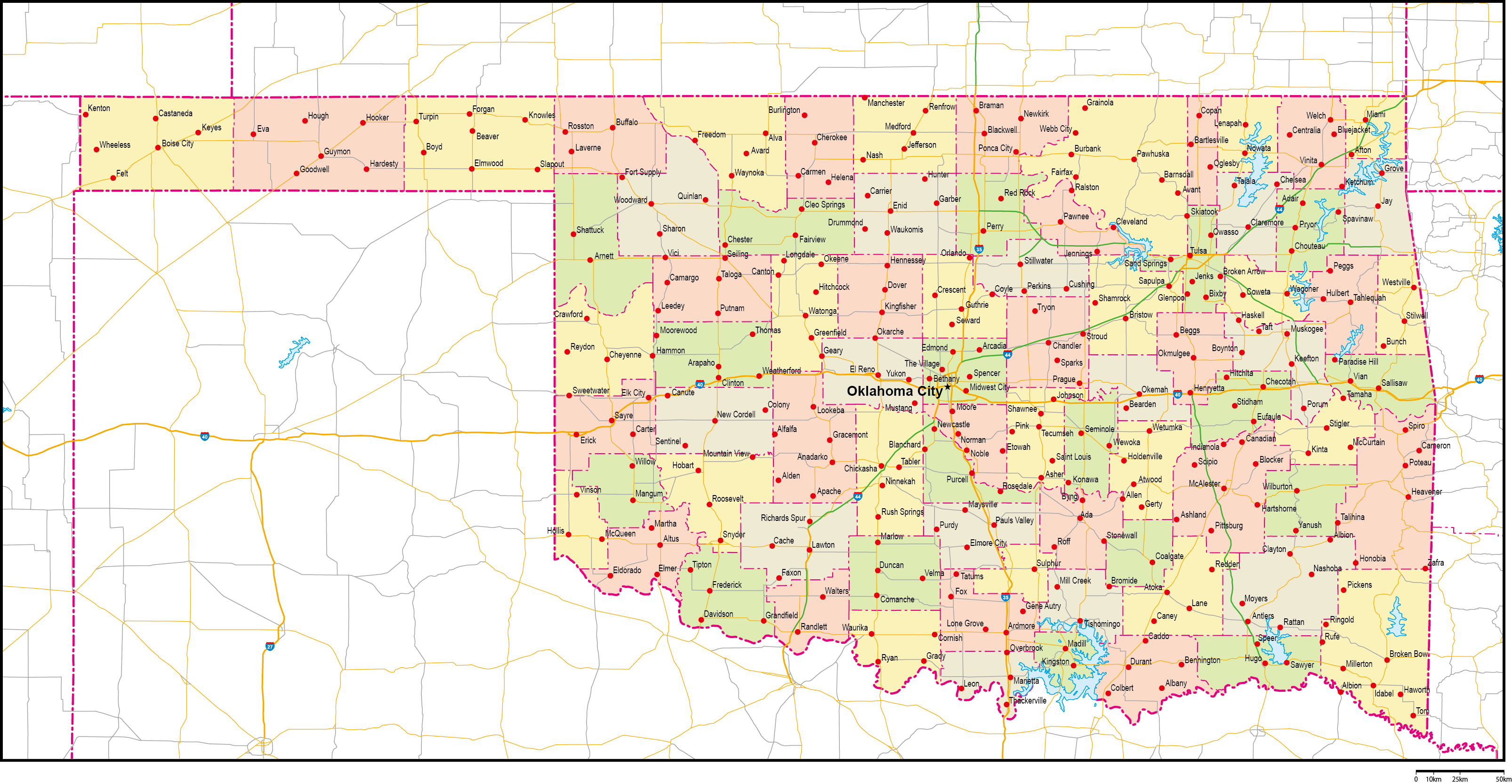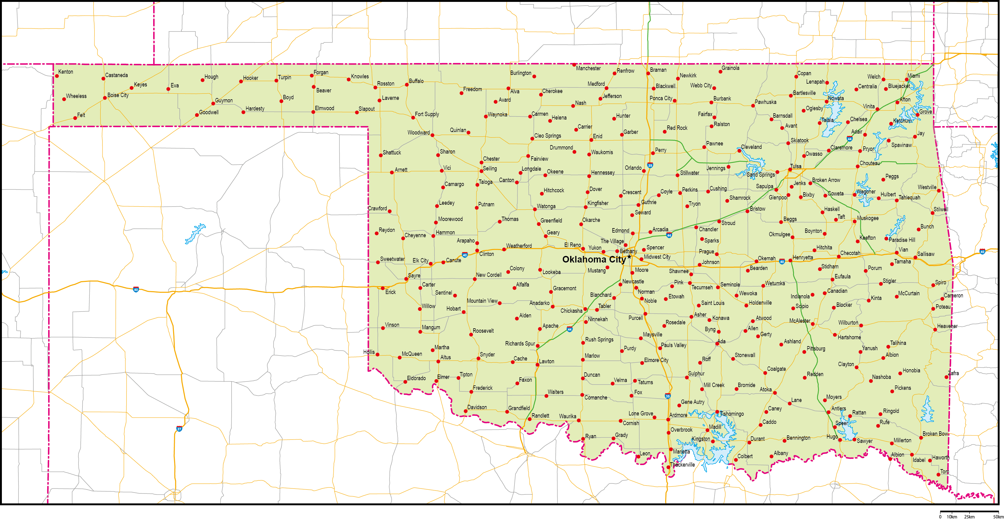 | 主要都市 | オクラホマシティ、タルサ、ノーマン、ロートン、ブロークンシアロー |