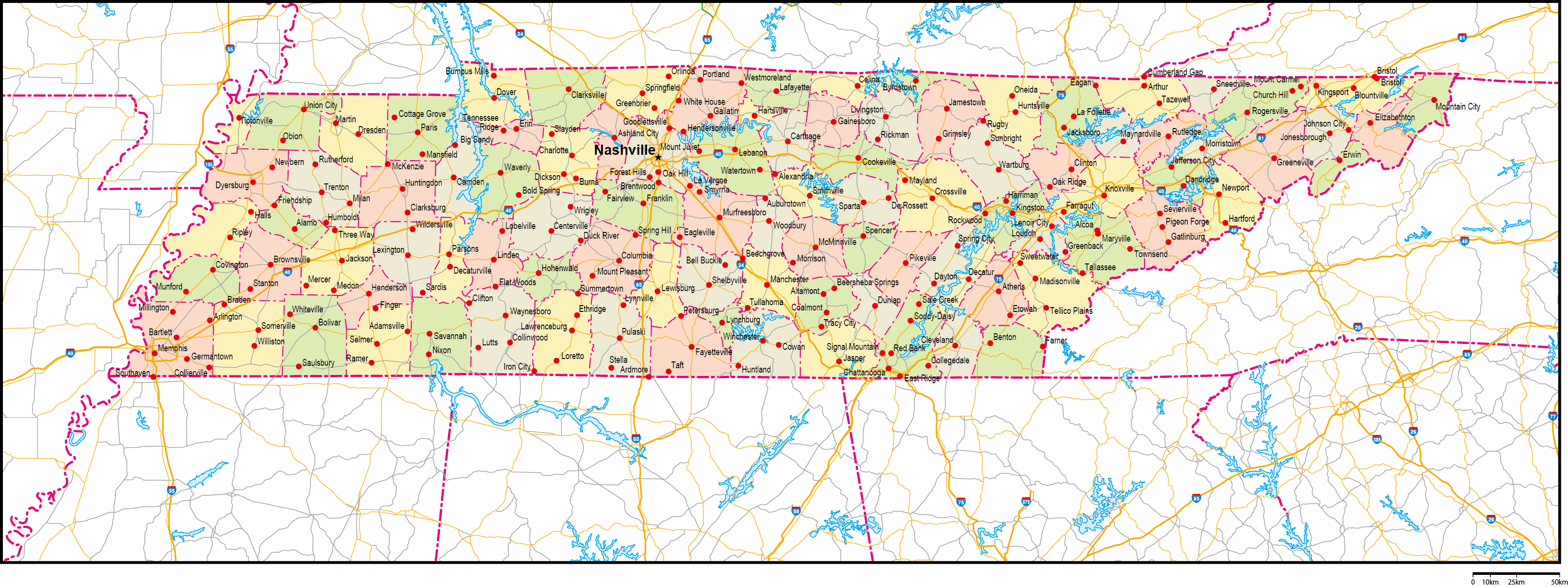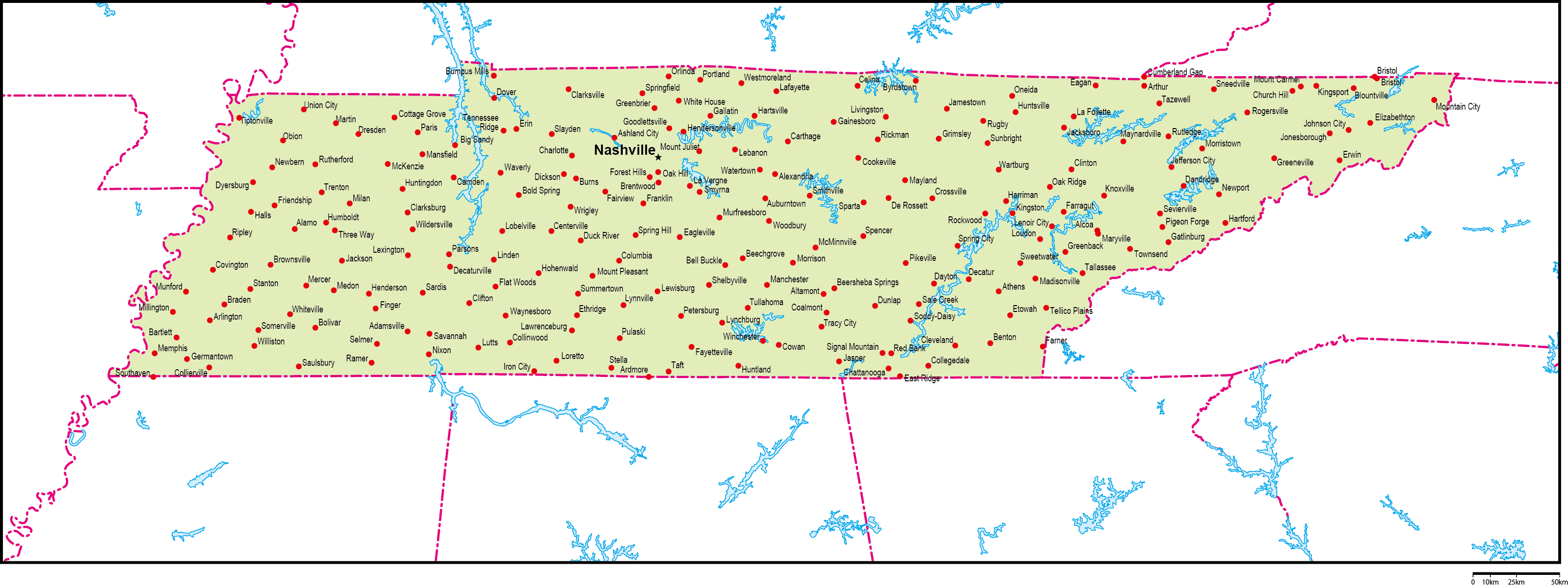 | 主要都市 | メンフィス、ナシュビル、ノックスビル、チャタヌーガ、クラークスビル |