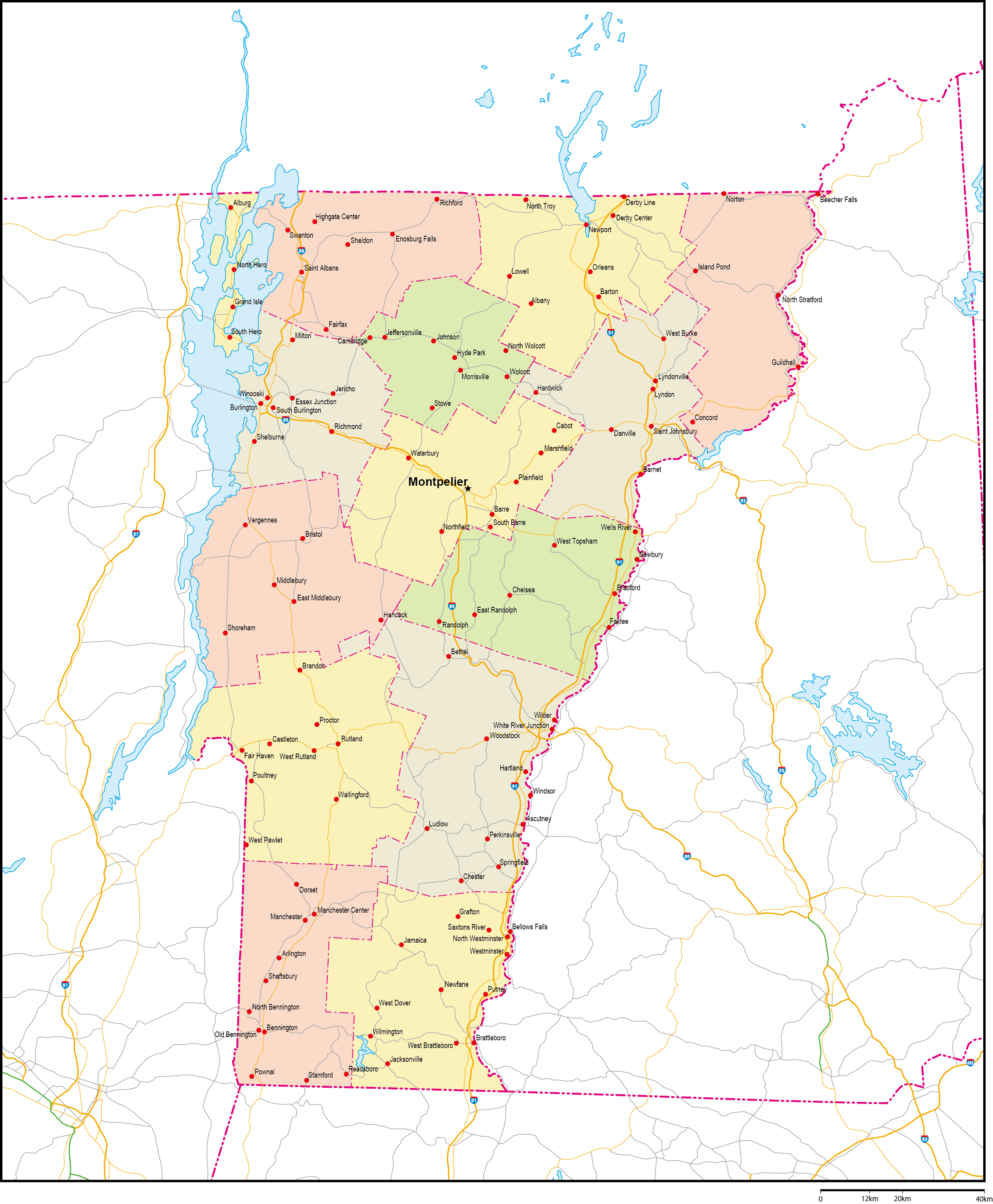 | 主要都市 | バーリントン、エセックス、ラットランド、コルチェスター、サウスバーリントン、モントピリア |