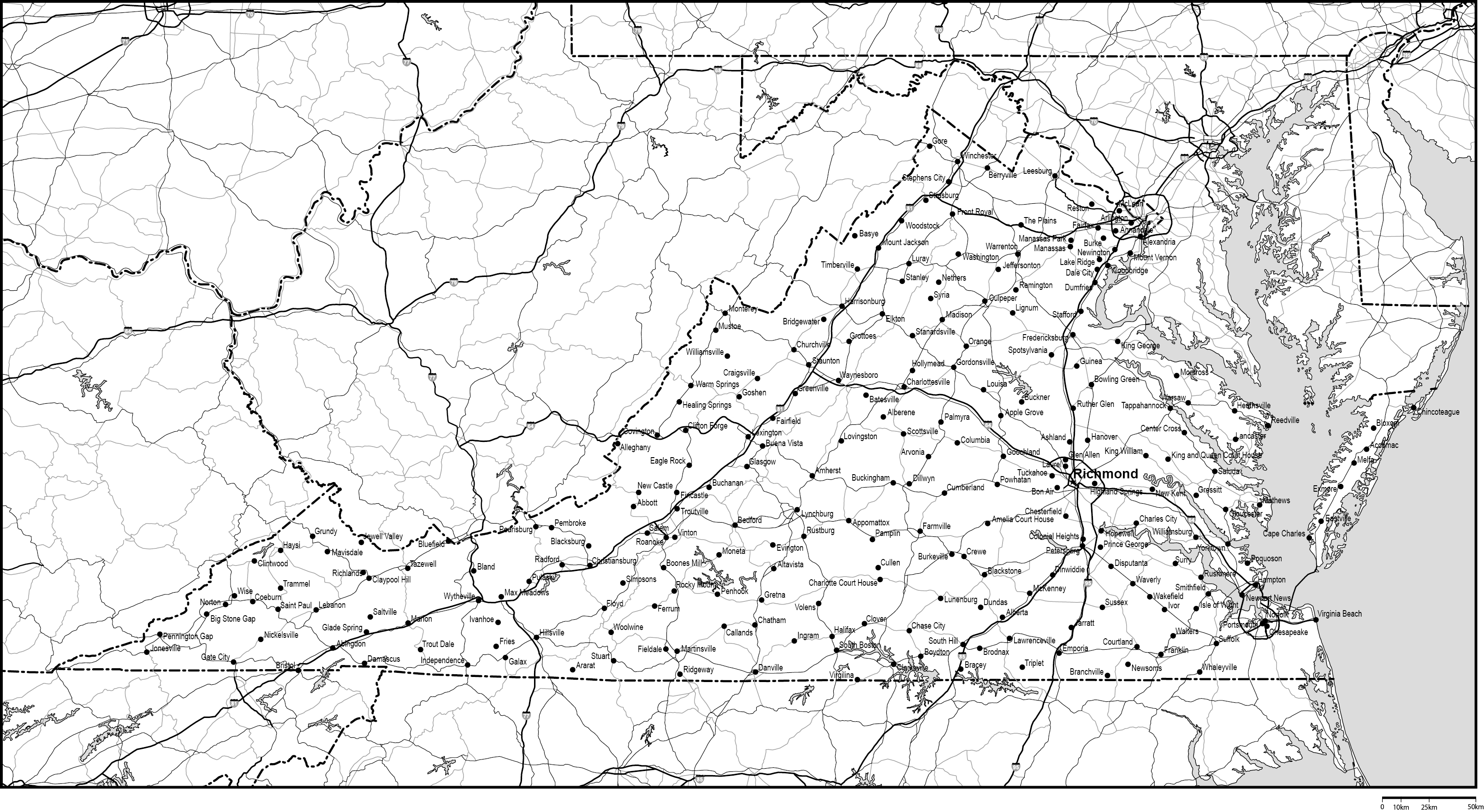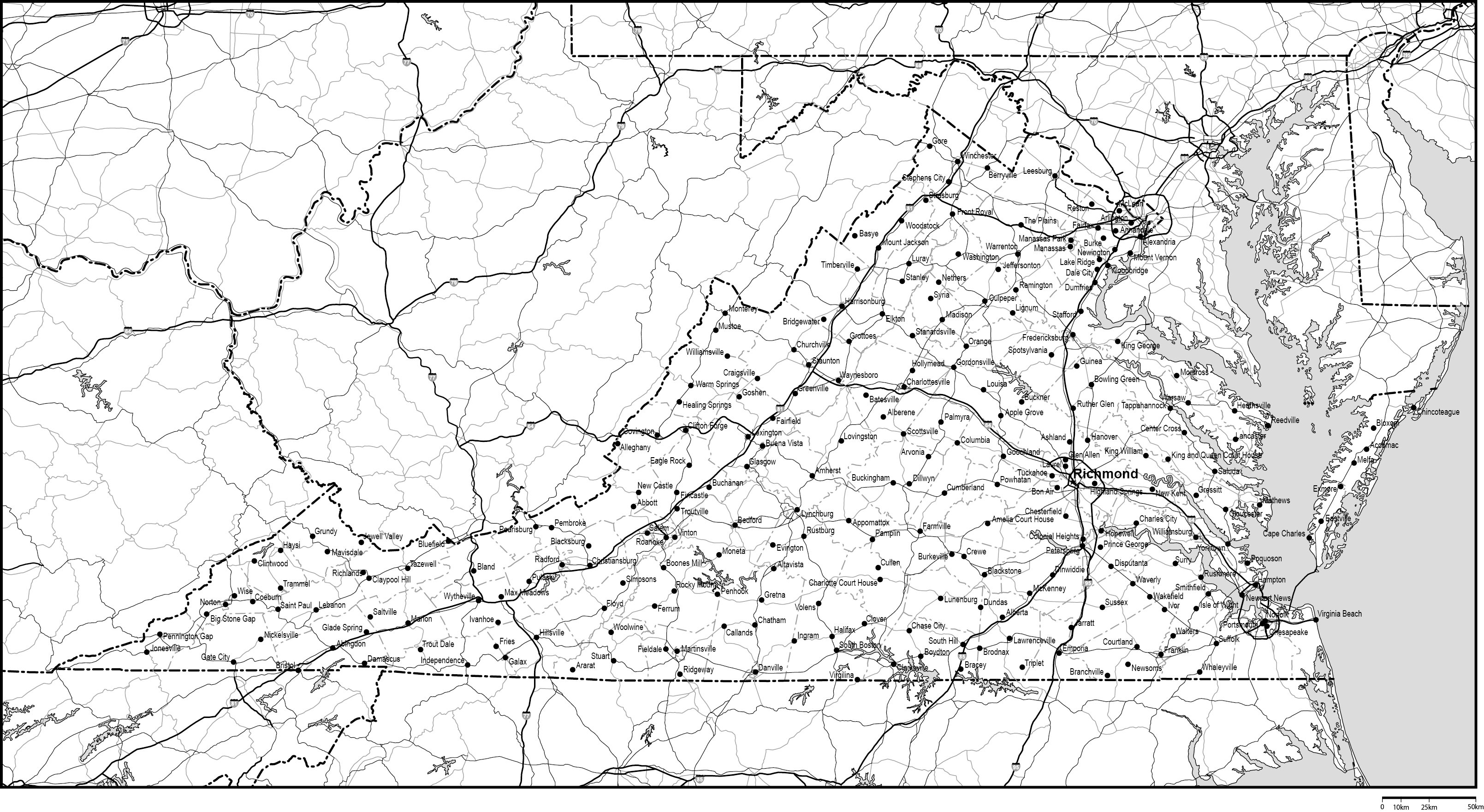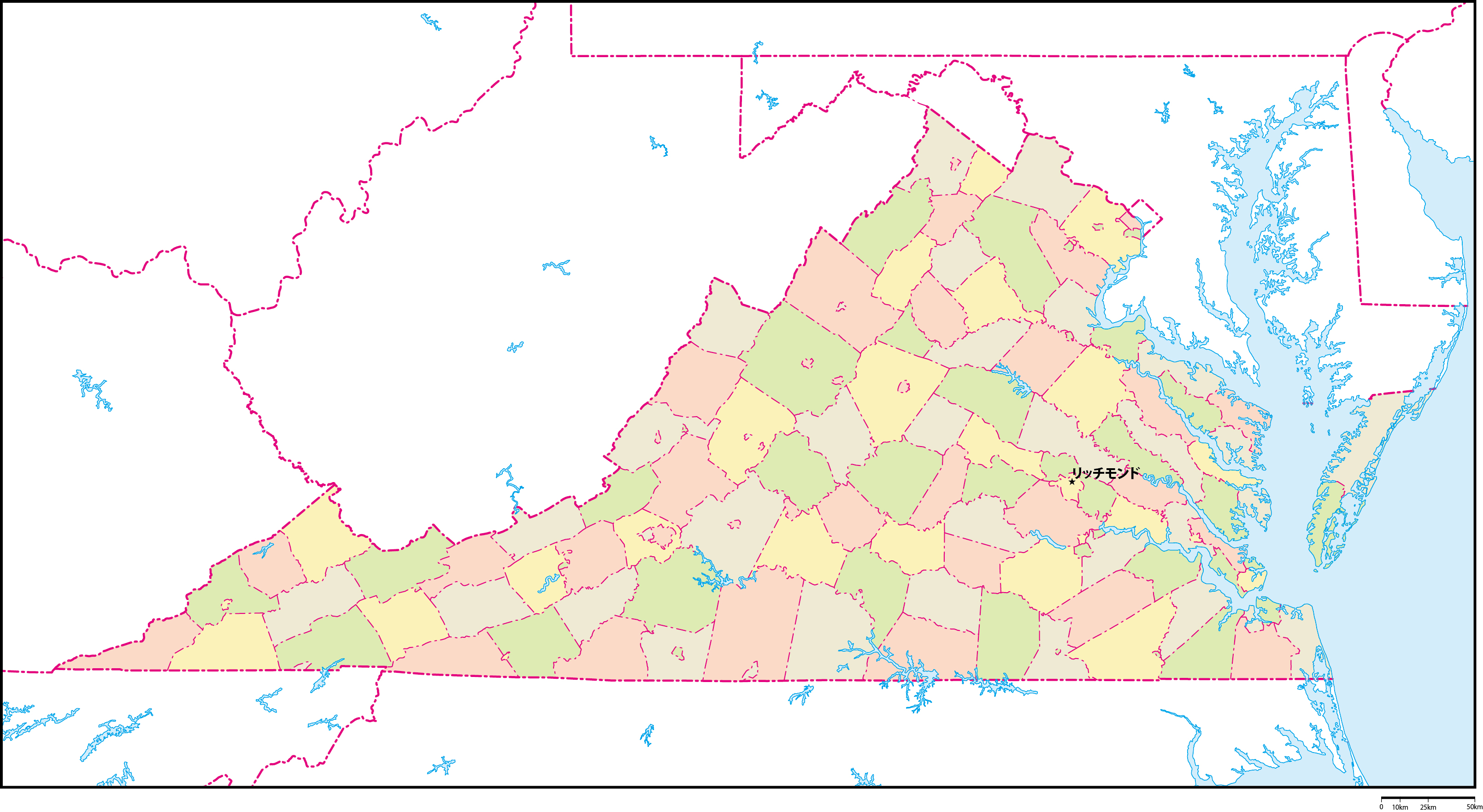 | 主要都市 | バージニアビーチ、ノーフォーク、チェサピーク、リッチモンド、アーリントン |