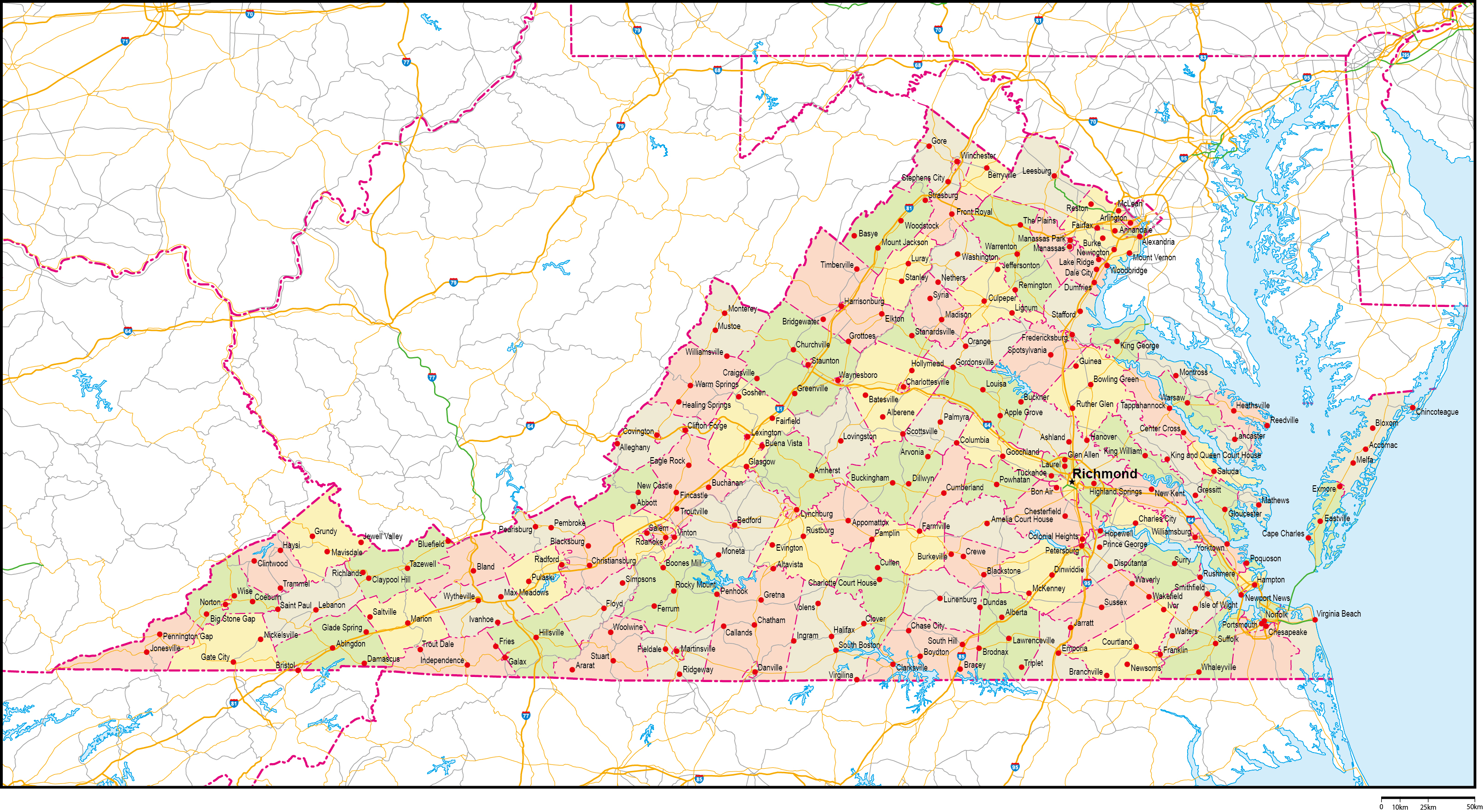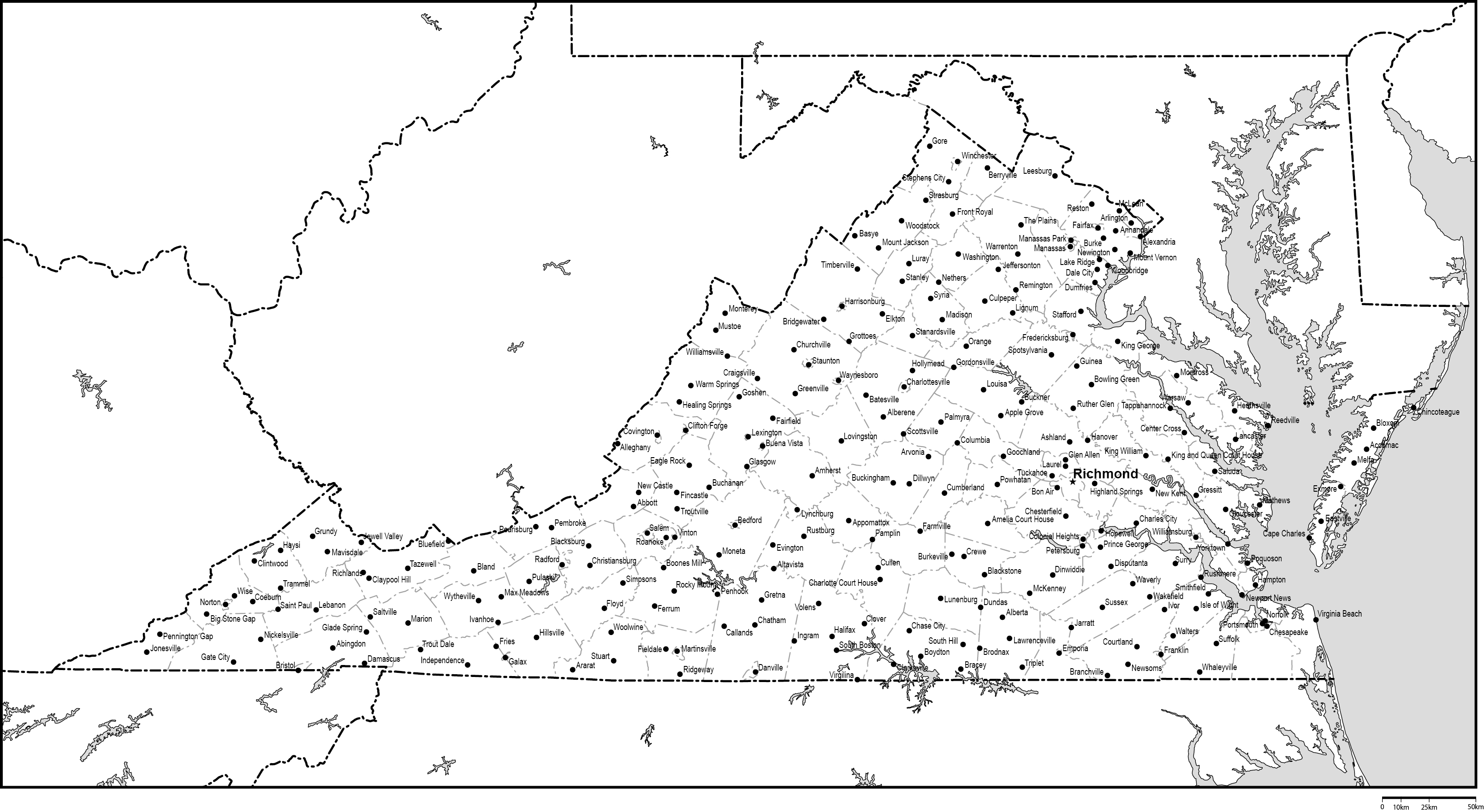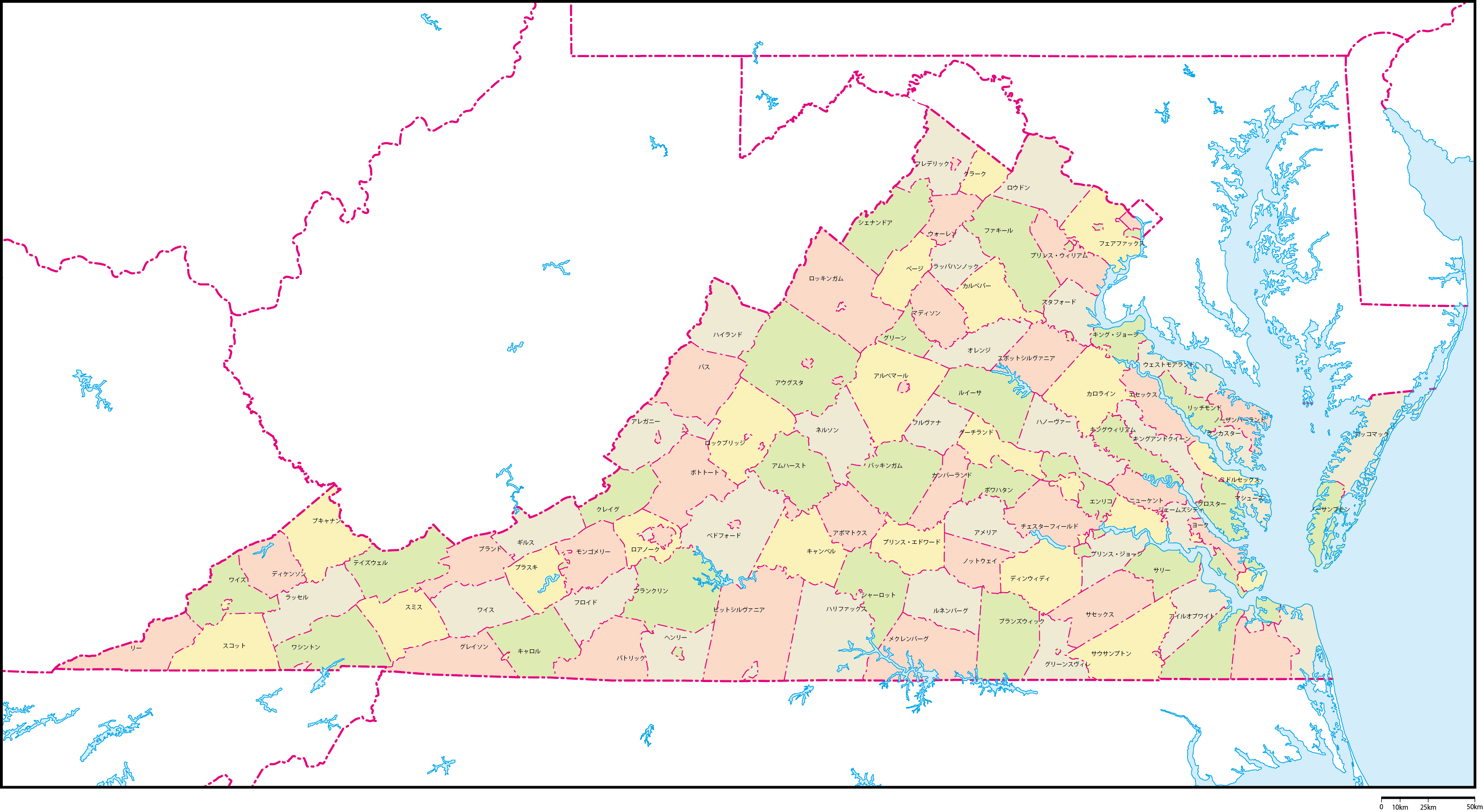 | 主要都市 | バージニアビーチ、ノーフォーク、チェサピーク、リッチモンド、アーリントン |