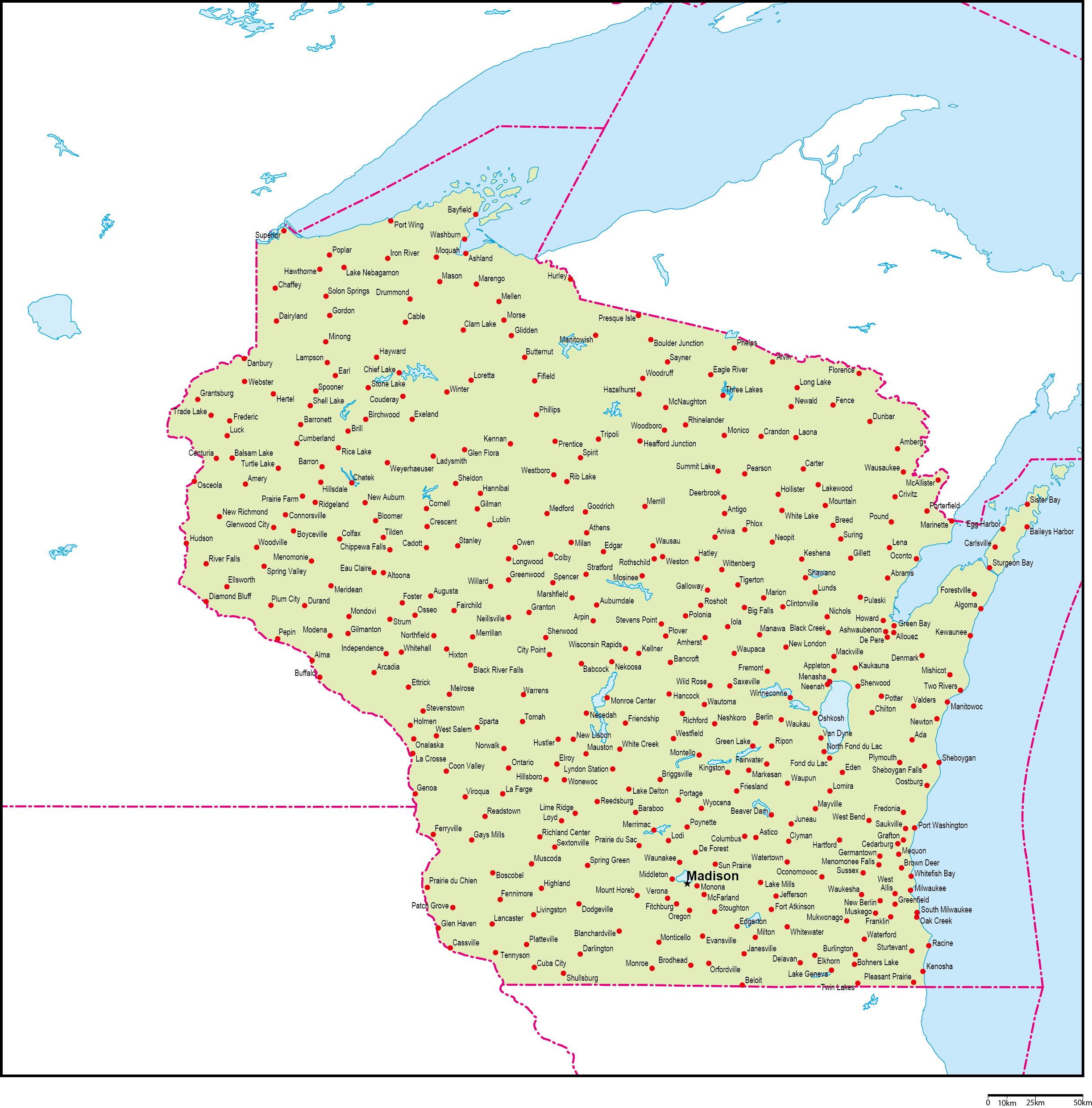 | 主要都市 | ミルウォーキー、マディソン、グリーンベイ、ケノーシャ、ラシーン |