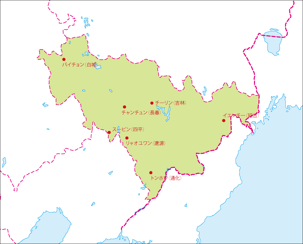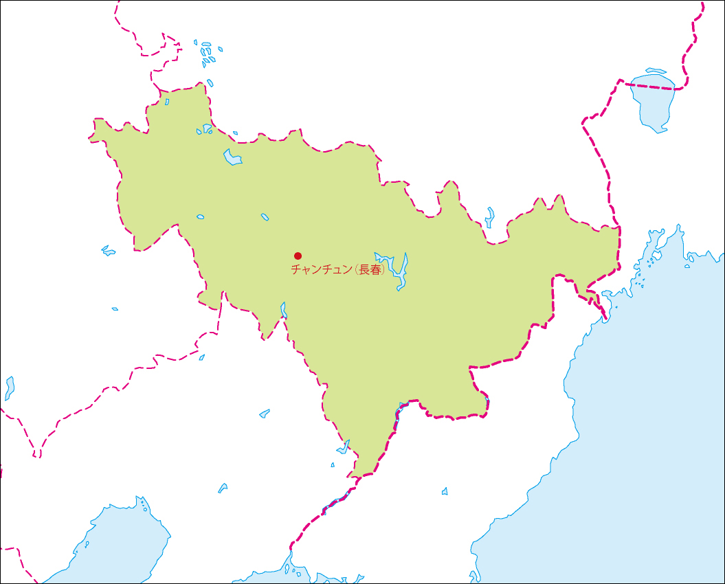 略称は吉。中国東北地方の中心に位置する。北東部はロシア、南東部は北朝鮮と接し、西は内モンゴル、北は黒竜江省、南は遼寧省と接している。漢民族90%以上を占め他に朝鮮族と満州族、少数のモンゴル族も暮らしている。同省は「一山三水」の省として知られ、一山は中国東北地方の最高峰長白山(標高2691M)を、三水は松花江、鴨緑江、図們江を指す。特産物である朝鮮人参、クロテンの毛皮、鹿茸(鹿の角)は「東北の三宝」として有名である。同省は中国六大林区の一つであり、省全面積の半分を林業用地で占める。土地が肥沃で、豆、米、トウモロコシの作物を産出する。温帯大陸性モンスーン気候に属し同省の東部は海に近いため湿潤気候であるが、西部はモンゴル高原に近いため乾燥する。スキー、樹氷など氷雪資源を生かした観光振興に力を入れている。