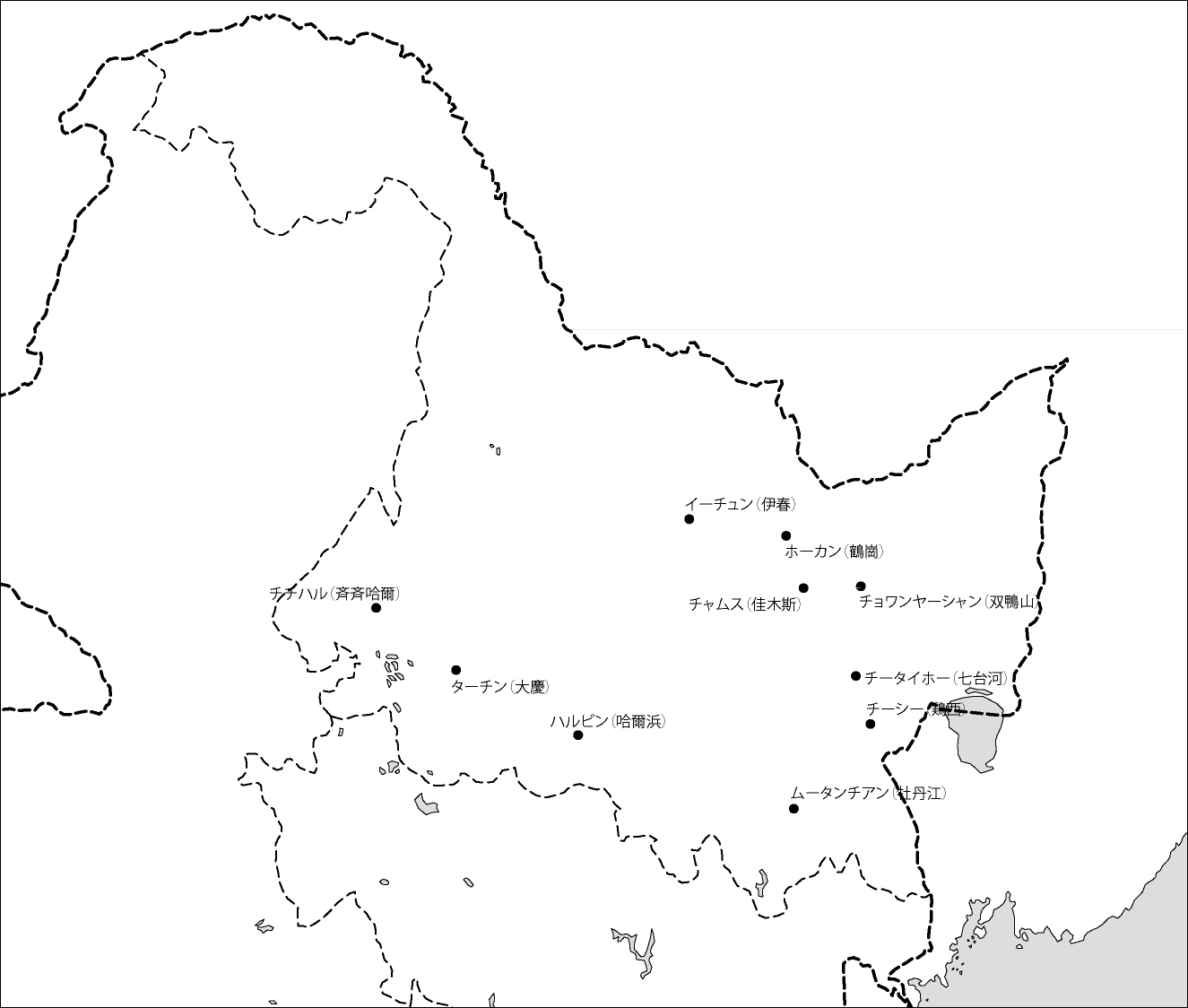 略称は黒。国内で最も北に位置する同省は、黒竜江とウスリー江を隔ててロシアと接している。北国独特の気候は観光資源となっており、ハルピンの氷祭り、牡丹江地区の林海雪原には毎年国内外から多くの観光客が訪れる。鏡泊湖、五大連池も景勝地として有名である。同省はトウモロコシ、小麦、米、ひまわり、ジャガイモなどの栽培が盛んであり三江平原は大型国営農場が幾つもある食糧生産の先進的地区。また中国有数の草原である松嫩平原では乳牛保有量、牛乳生産量が中国一を誇る。大慶の油田は年間約600万トンの原油を産出しており、中国の石油自給に大きく貢献している。漢民族と満州族、朝鮮族、回族、モンゴル族等10の少数民族が暮らす。温帯性半湿潤モンスーン気候、冬は-30度になることもしばしば。夏の平均気温は18度から22度。