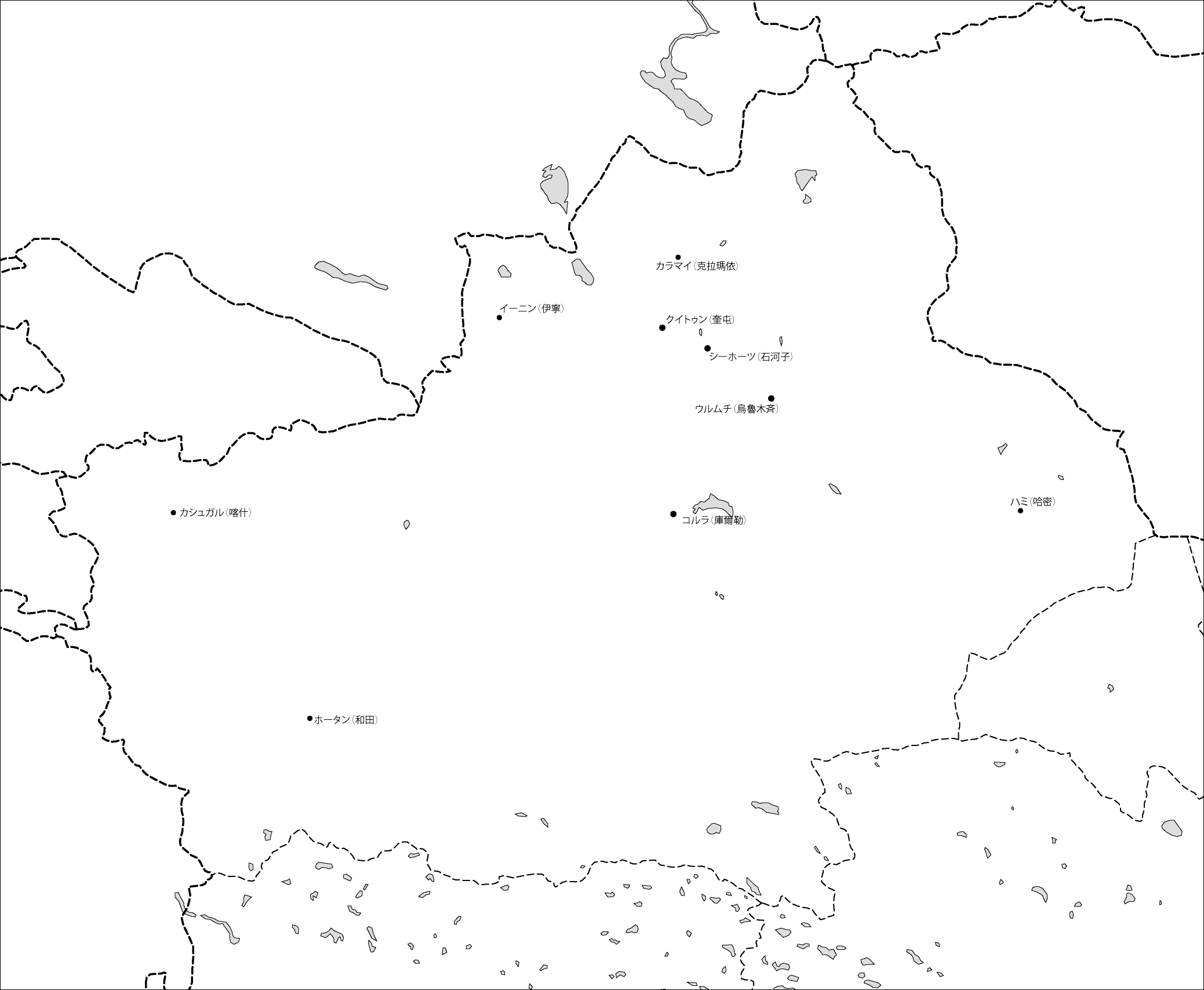 略称は新。中国の西端にあり、東部から南部にかけて甘粛省、青海省、チベット自治区と接する。同自治区の面積は中国総面積の約六分の一を占め、中国国内で最も広い面積を持つ。北はジャンガル、南はタリムの二つの盆地からなり、中央を天山山脈が横切っている。日照時間が長く、昼夜の寒暖の差が激しい(平均12度の差)ためメロンや梨など甘い果物を産出する。トルファン産のレーズンは特に甘いことで有名である。多くの少数民族が住み、羊やヤギの遊牧、また農業に携わる。タクラマカン砂漠を横切るシルクロード沿いには楼蘭を始め多くの遺跡が残されている。シルクロード沿いのトルファン市は昔から東西の交通の要であった。特産品は和田玉、シルク、新疆綿。新疆綿は世界三大高級コットンの一つ。ウイグル族のほか漢民族、カザフ族、回族が住む。