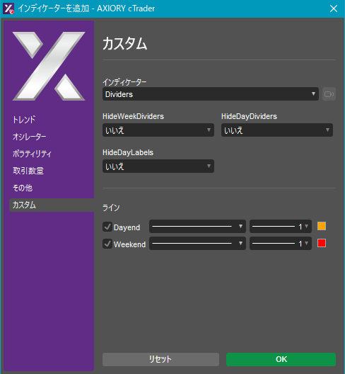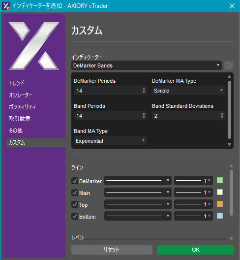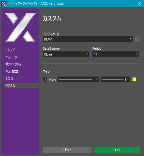 Dから始まるインディケーターです。[表示]のあるものは画面に表示された画像が見られます。