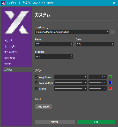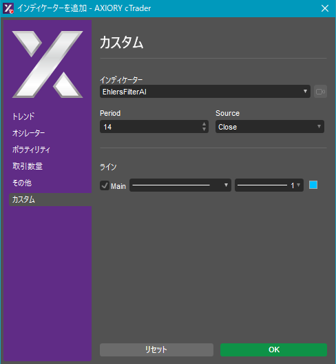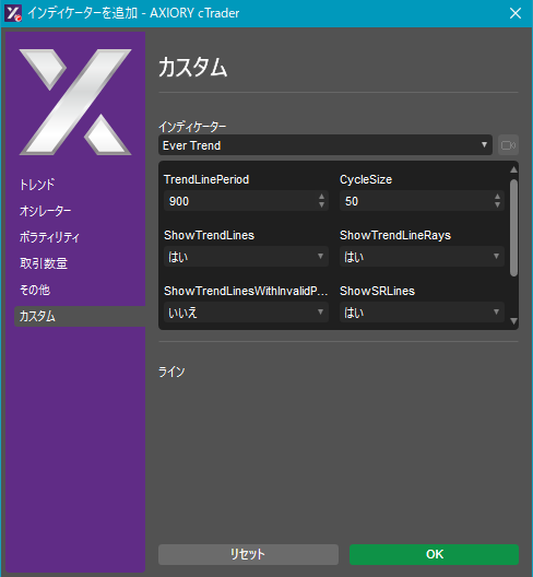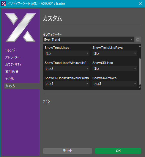cTraderに表示するカスタムインディケーターの一覧です。