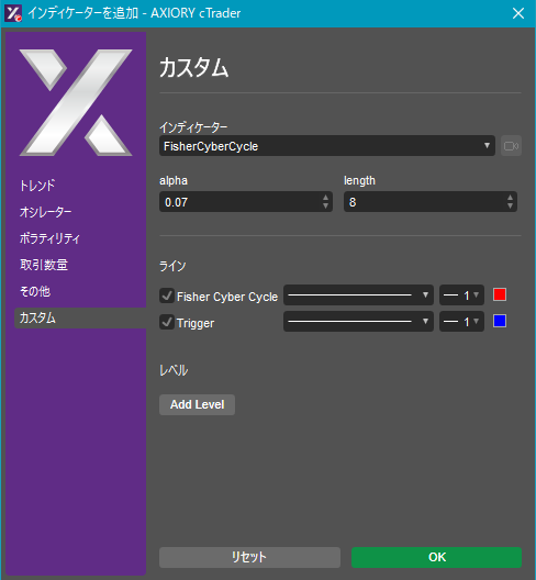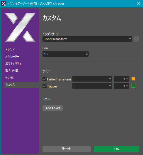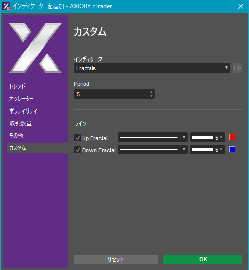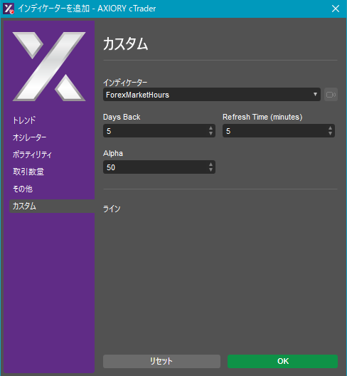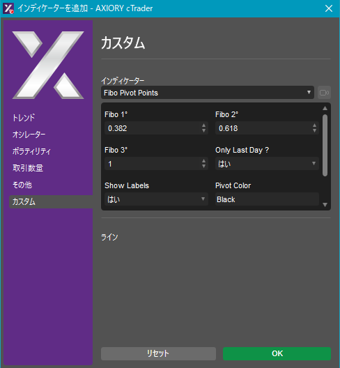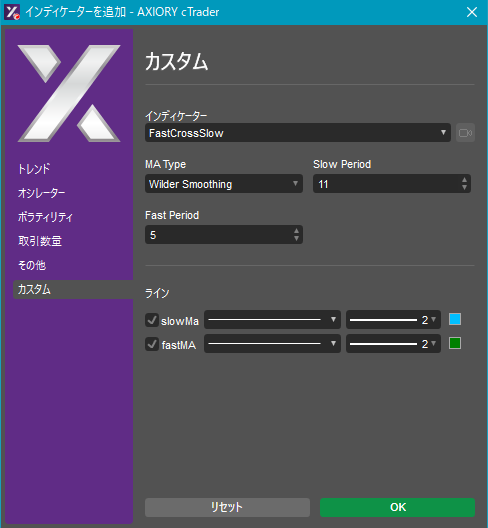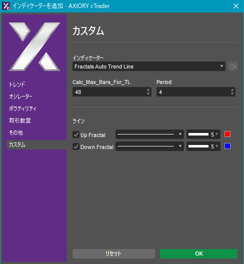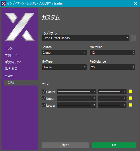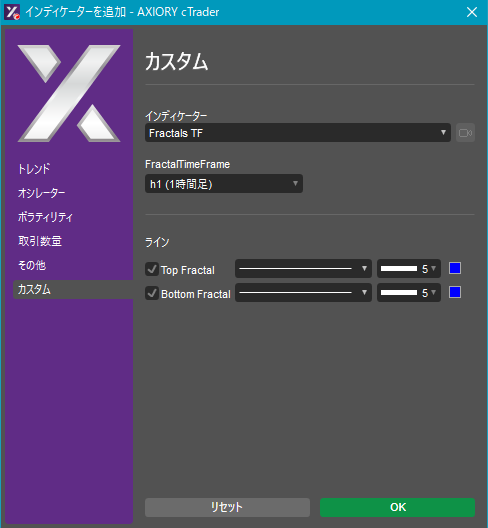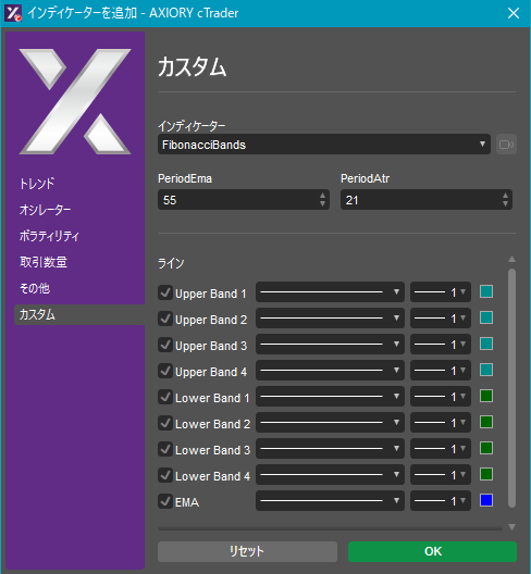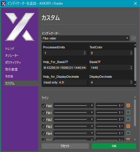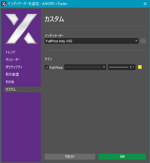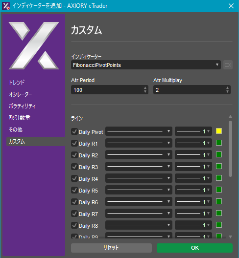 cTraderに表示するカスタムインディケーターの一覧です。