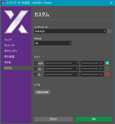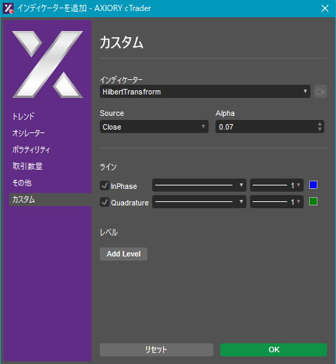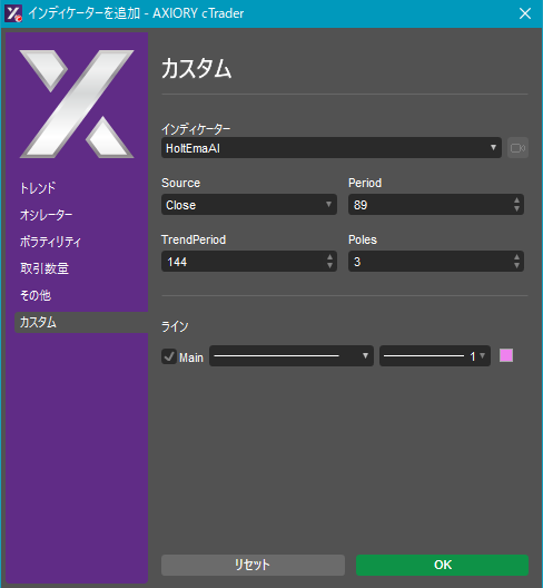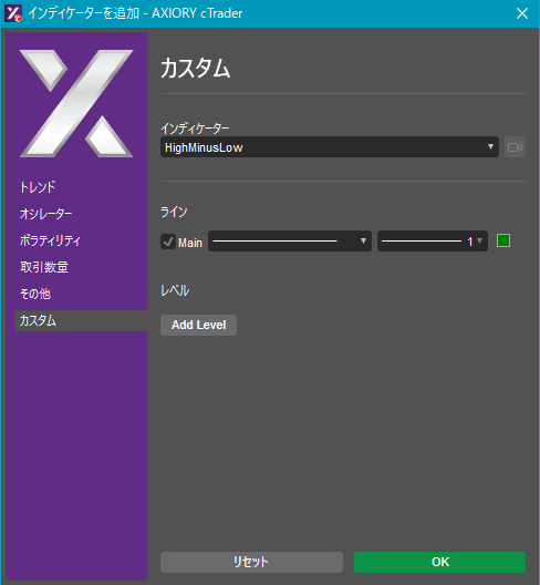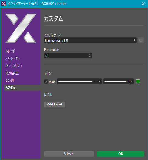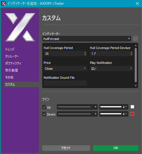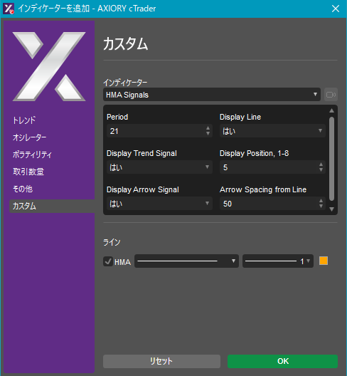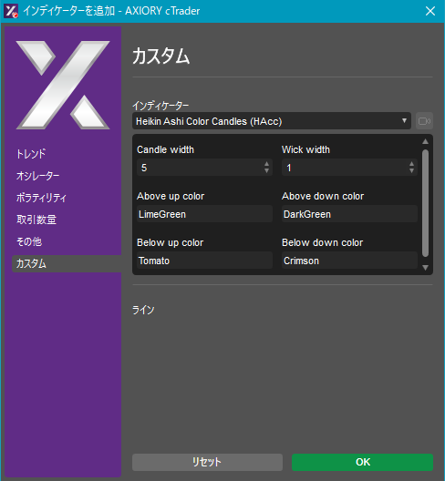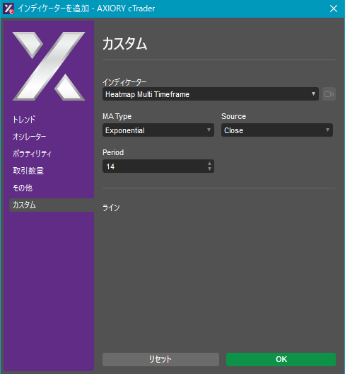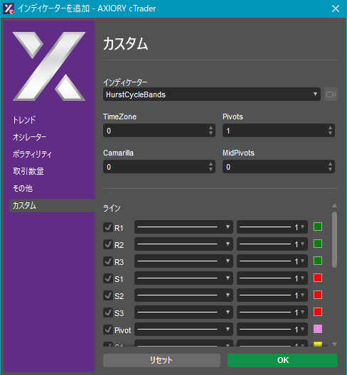 cTraderに表示するカスタムインディケーターの一覧です。