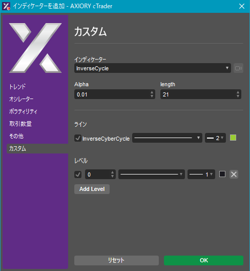 Iから始まるインディケーターです。[表示]のあるものは画面に表示された画像が見られます。