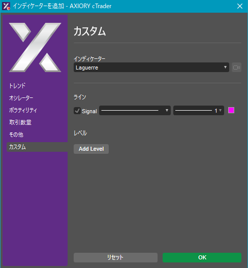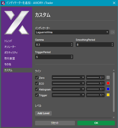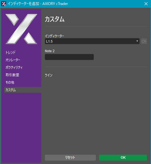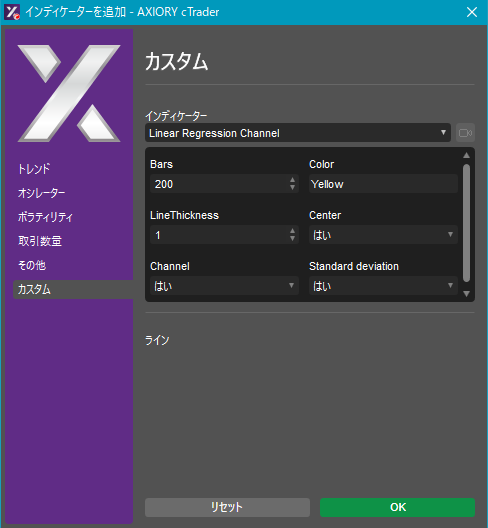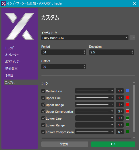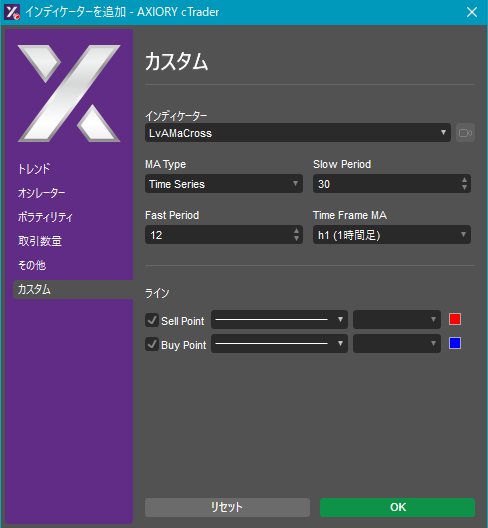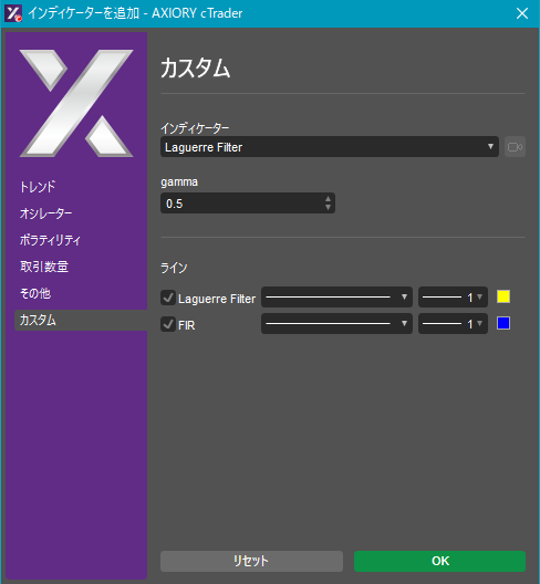 cTraderに表示するカスタムインディケーターの一覧です。