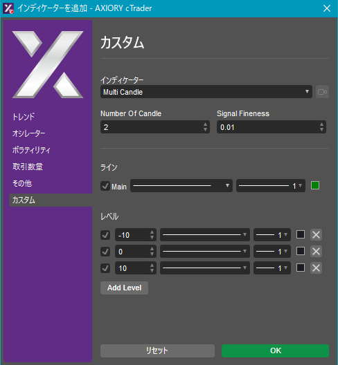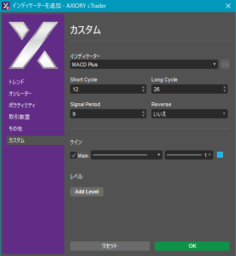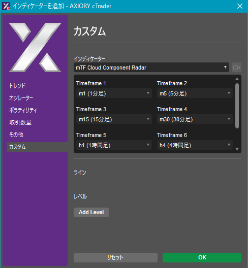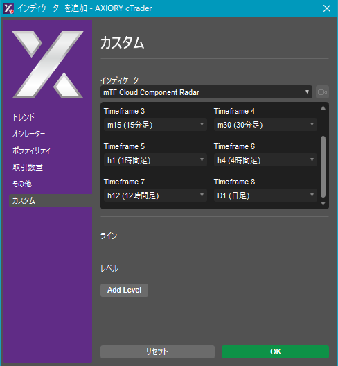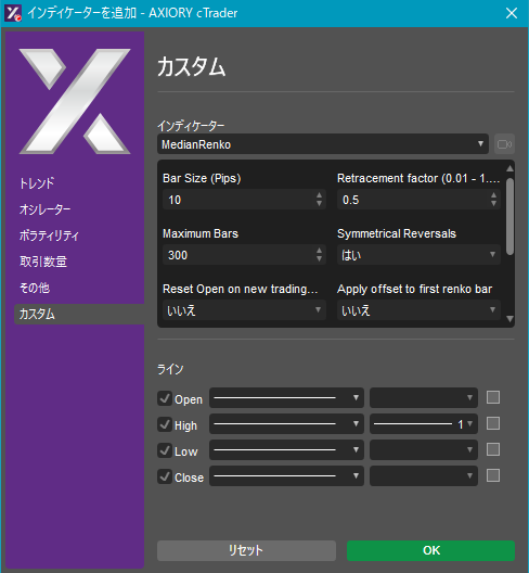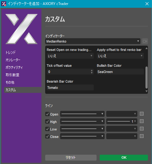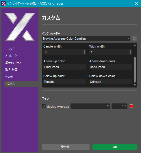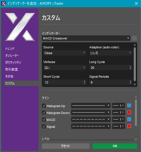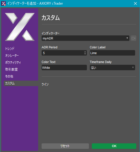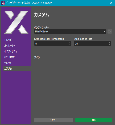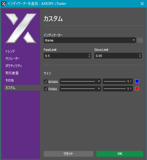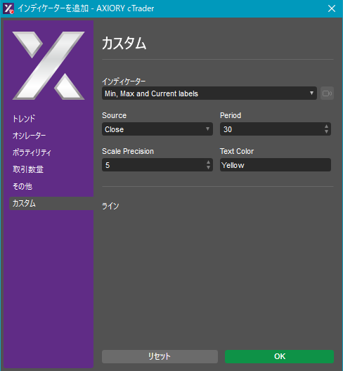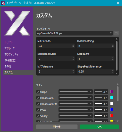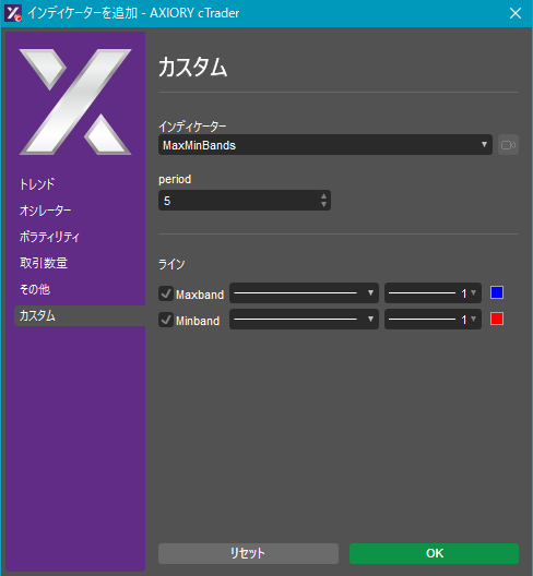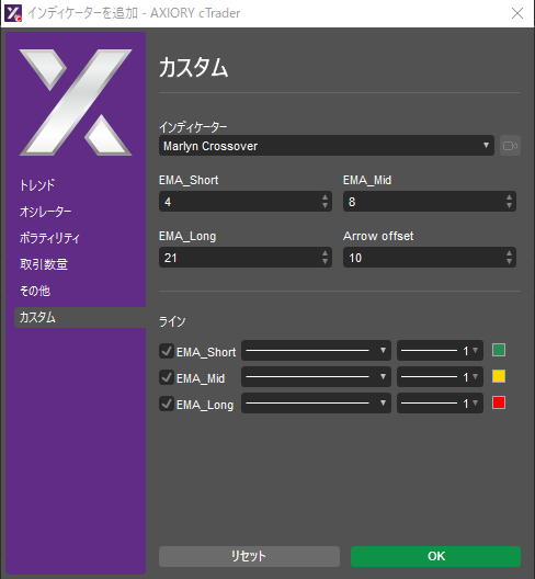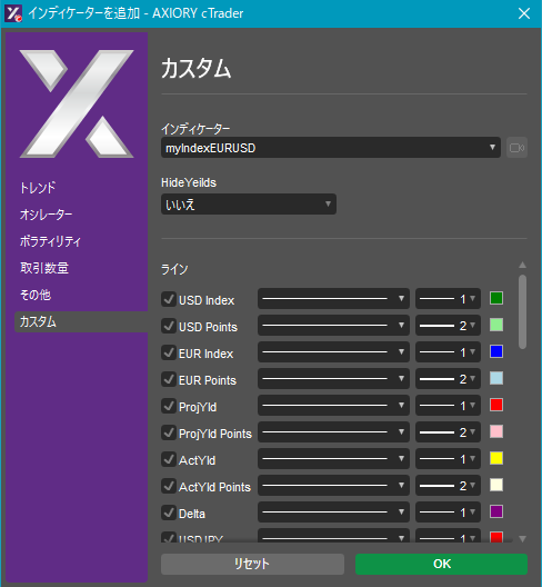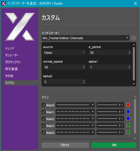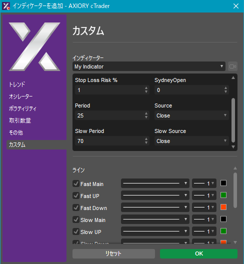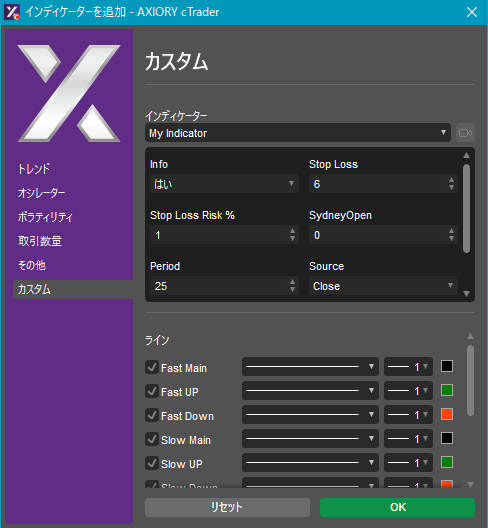 cTraderに表示するカスタムインディケーターの一覧です。