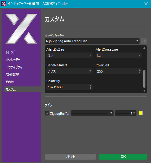 Mijo ZigZag Auto Trend Line.algo [表示] [設定] [設定]