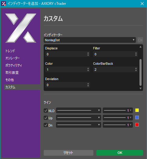 NonLagDotAlarm.algo [表示] [設定] [設定]