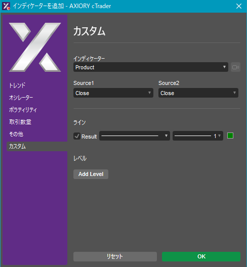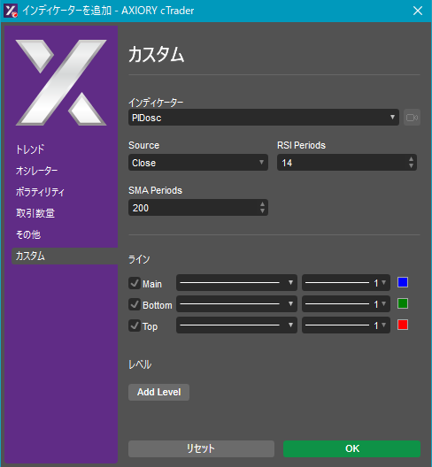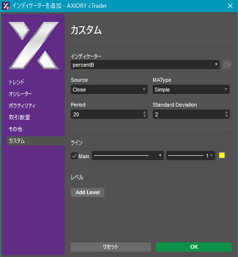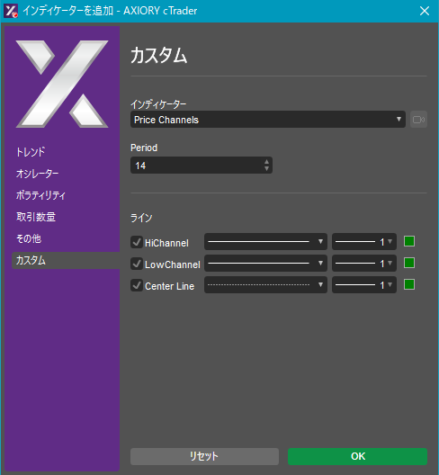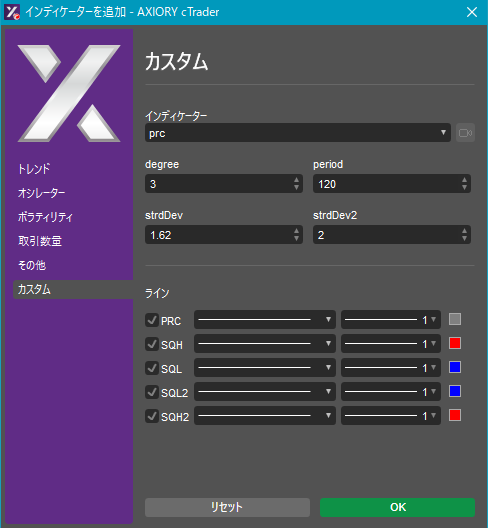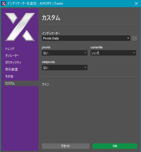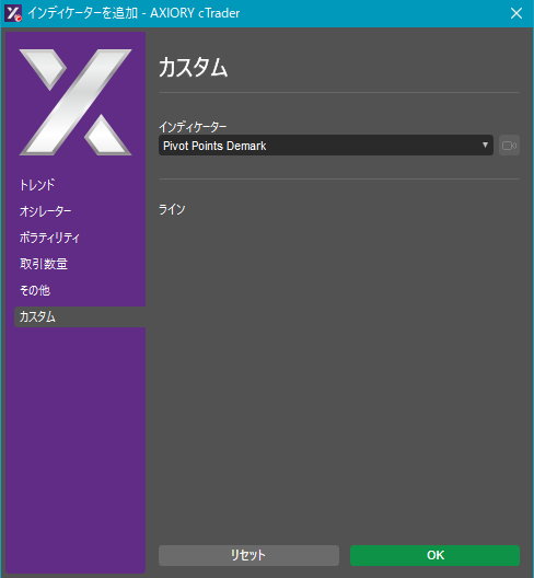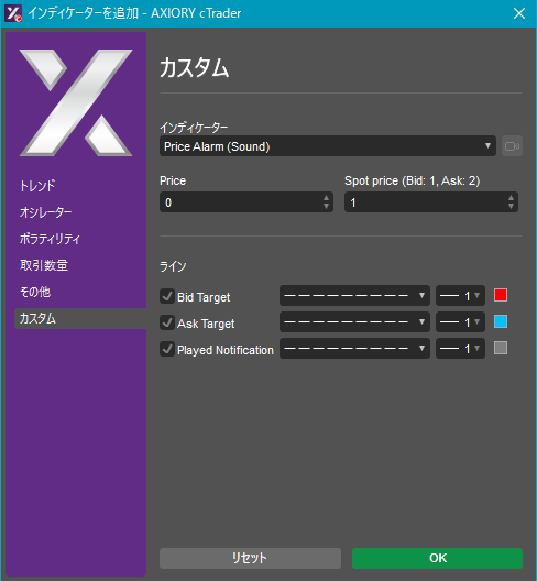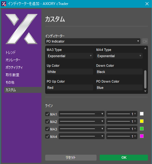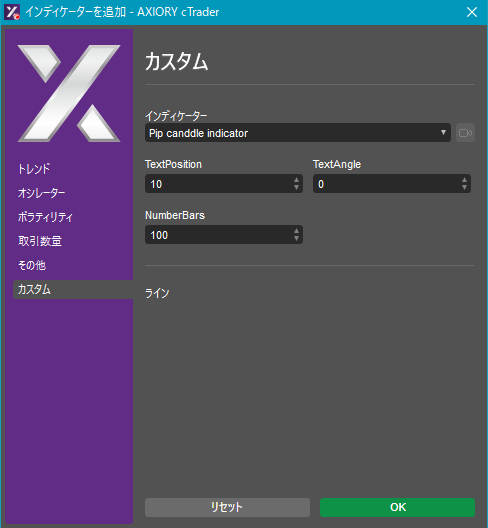 cTraderに表示するカスタムインディケーターの一覧です。