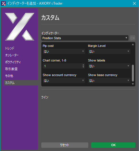 Position Stats.algo [表示] [設定] [設定]