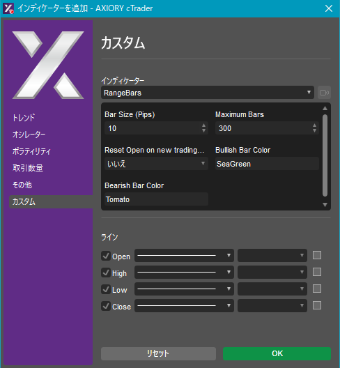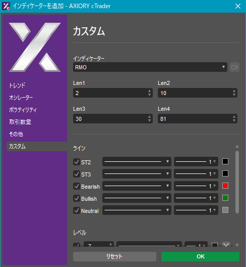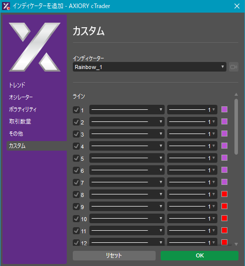 Rから始まるインディケーターです。[表示]のあるものは画面に表示された画像が見られます。