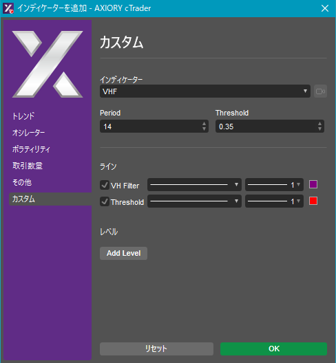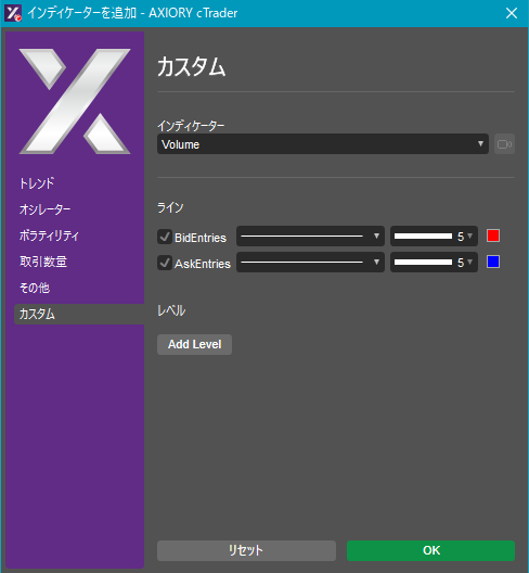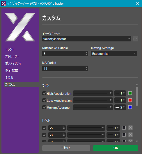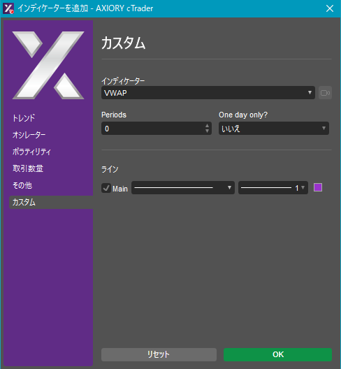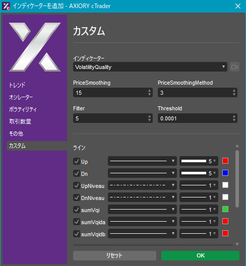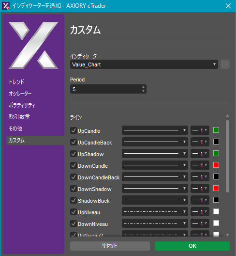 cTraderに表示するカスタムインディケーターの一覧です。