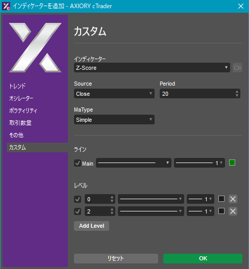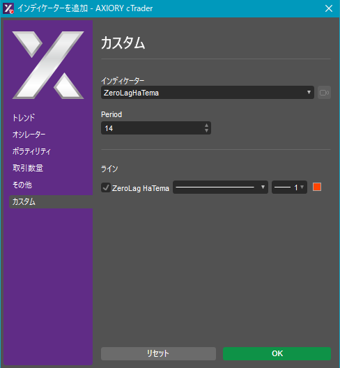 Zから始まるインディケーターです。[表示]のあるものは画面に表示された画像が見られます。