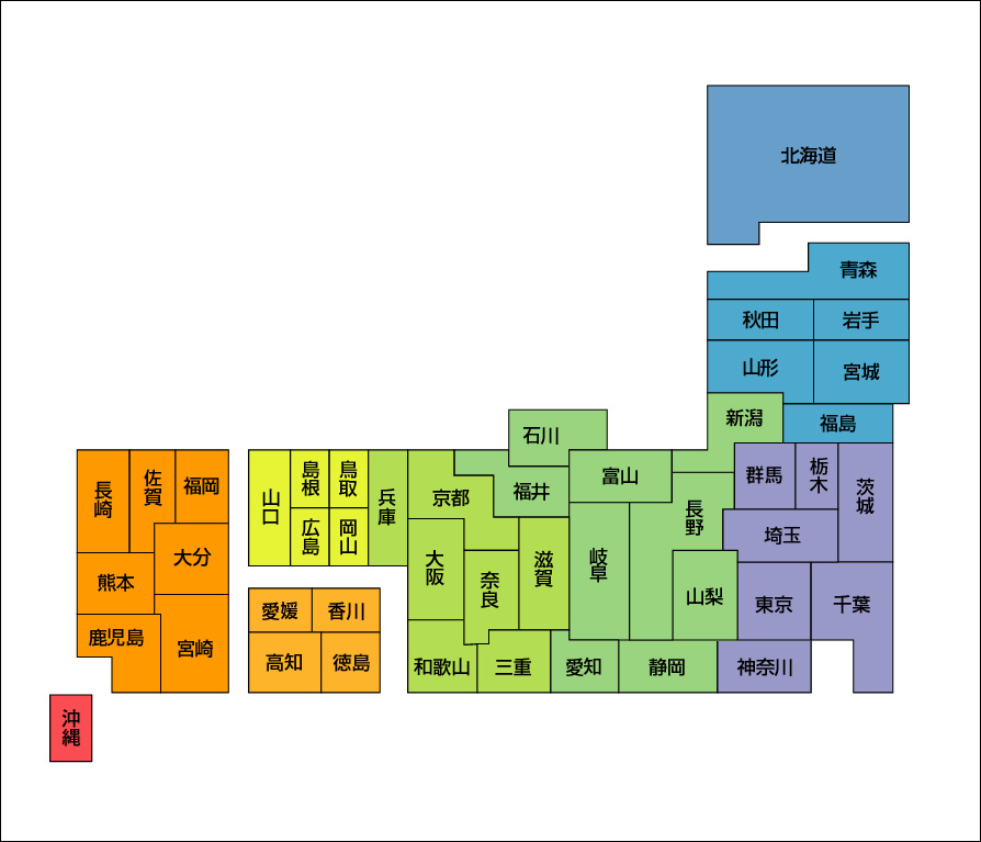 デザイン日本地図12(地域色別)