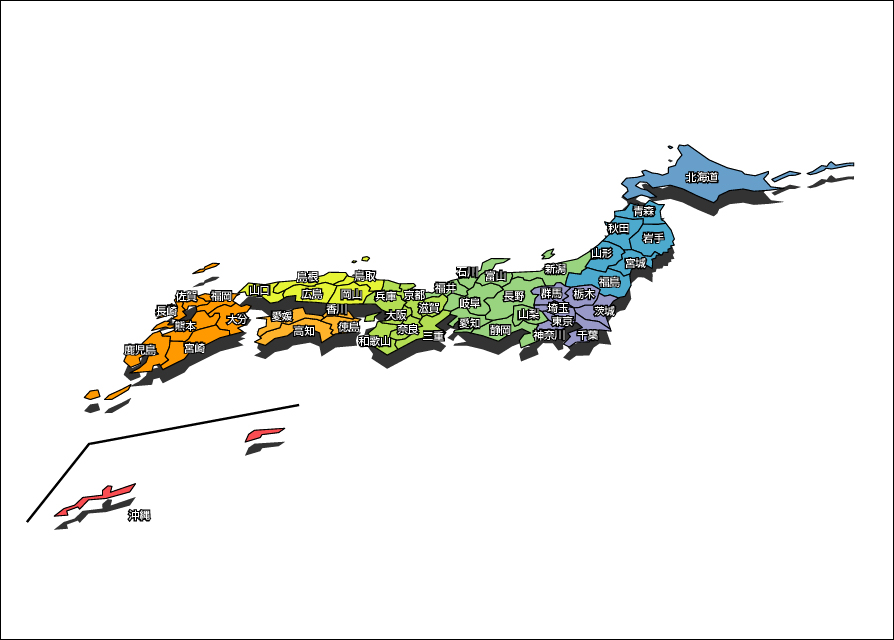 デザイン日本地図23(地域色別)