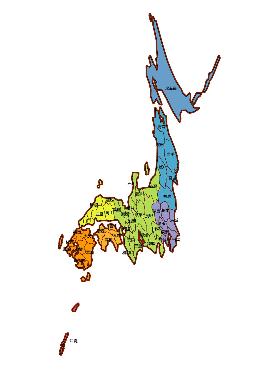 デザイン日本地図25(地域色別)