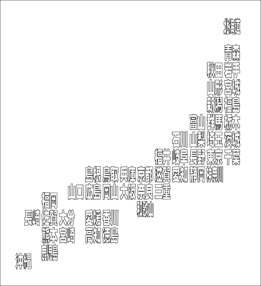 ゴシック書体日本地図01(白地図)