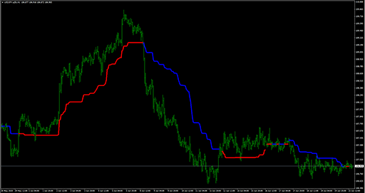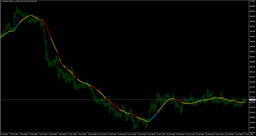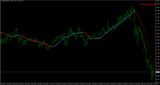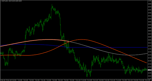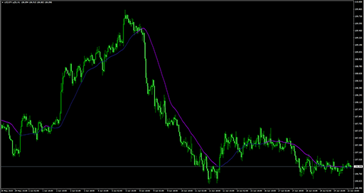 FXのフリーのチャートソフト、メタトレーダー4 (MT4)にインディケーターを表示させた画像です。