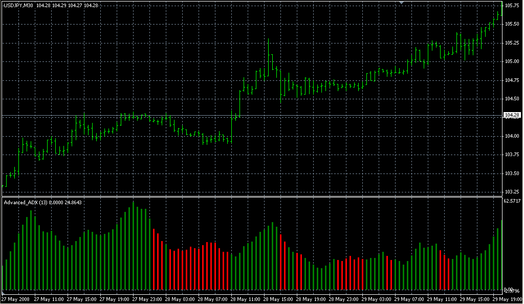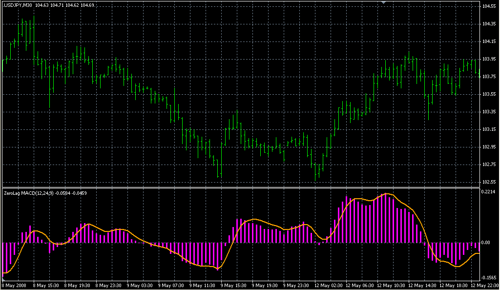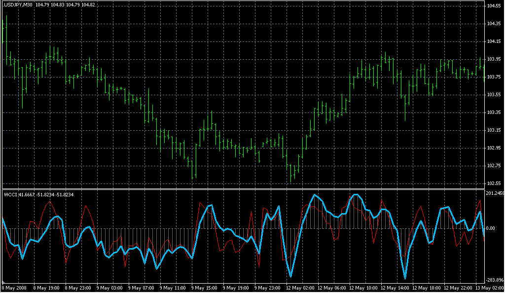 FXのフリーのチャートソフト、メタトレーダー4 (MT4)にインディケーターを表示させた画像です。