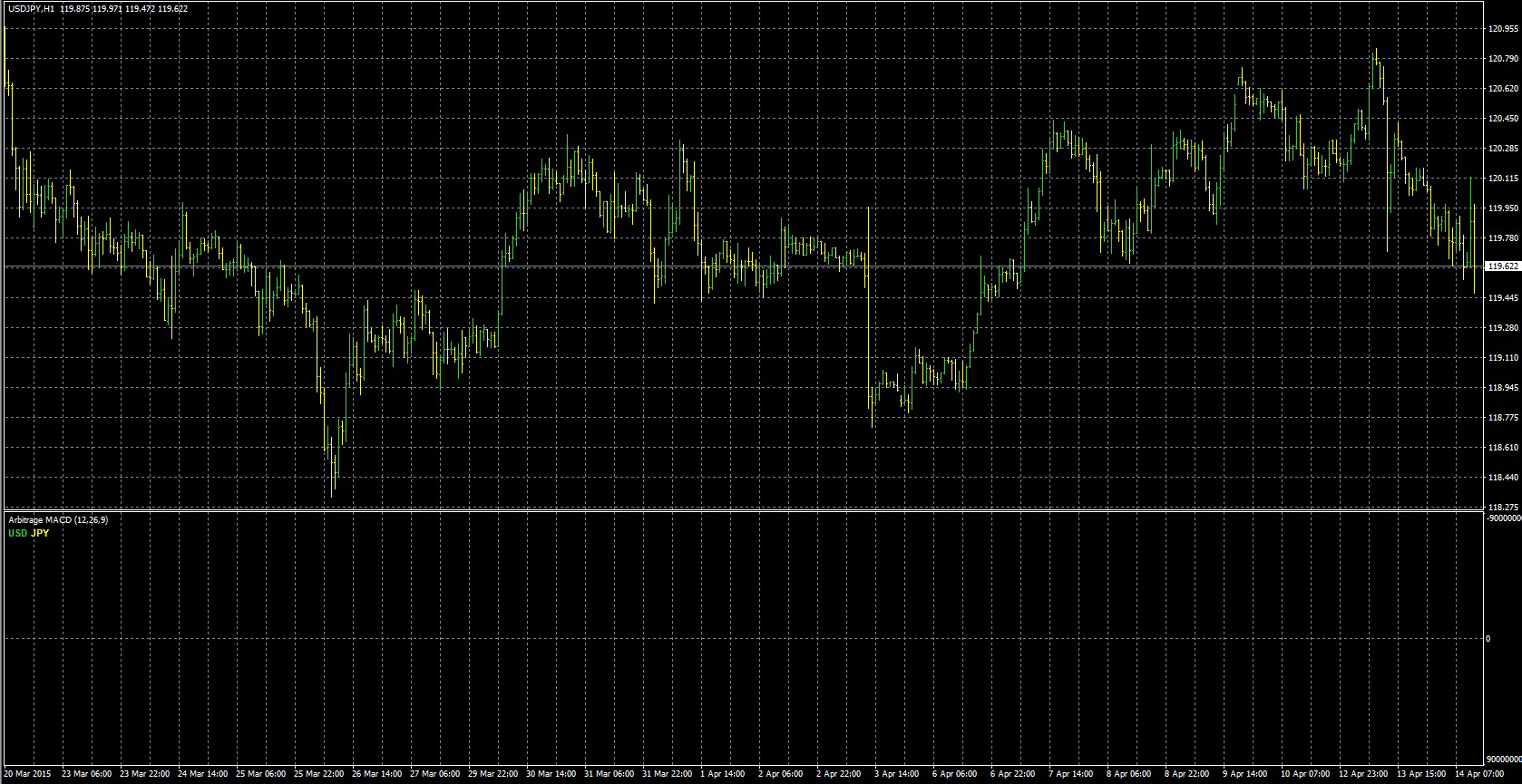 FXのフリーのチャートソフト、メタトレーダー4 (MT4)にインディケーターを表示させた画像です。