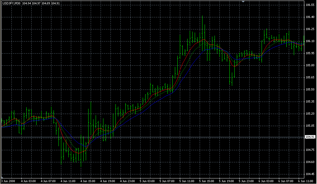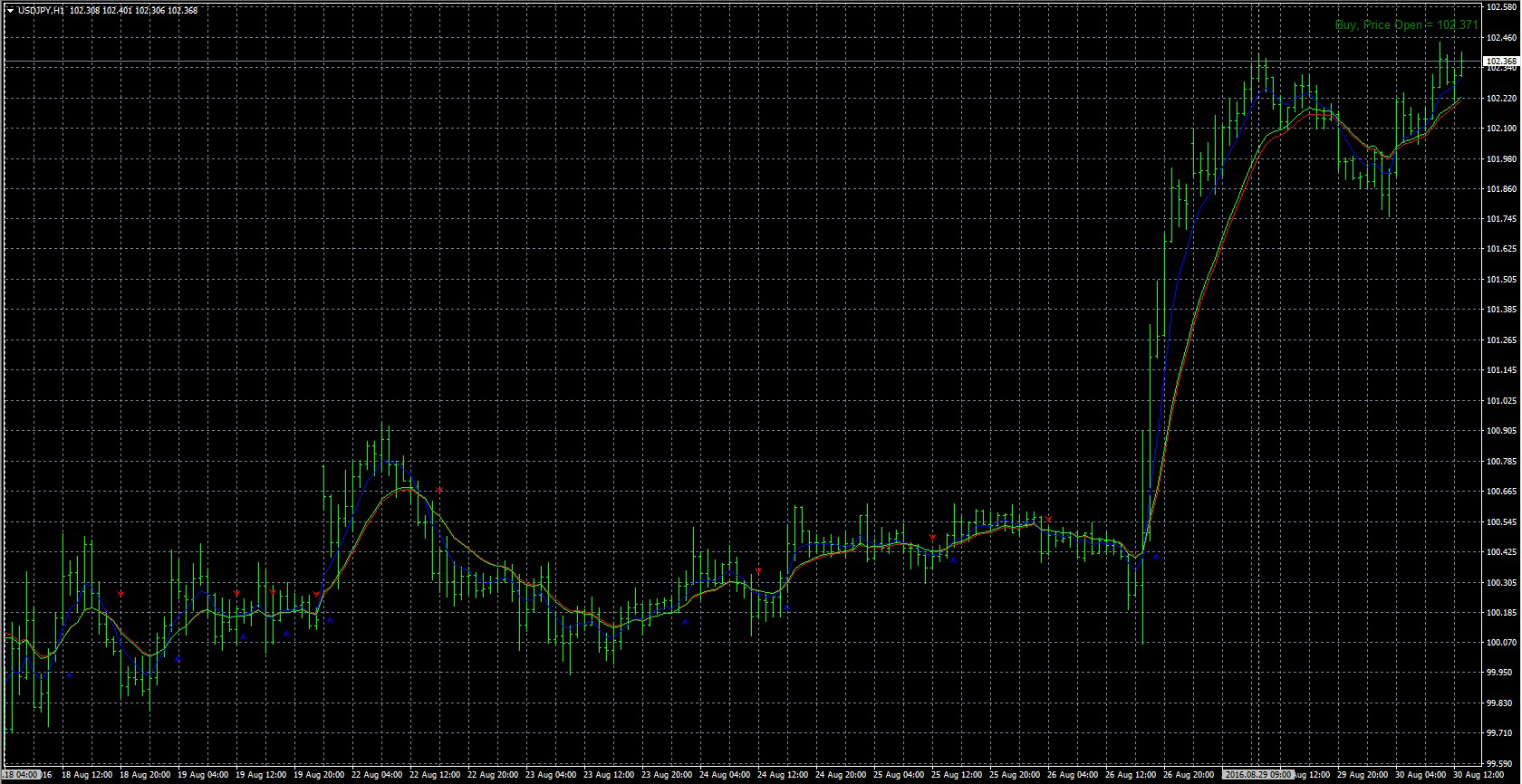 1、ツール一つで、移動平均線を三本引き、並びや向きをラベルで表示。