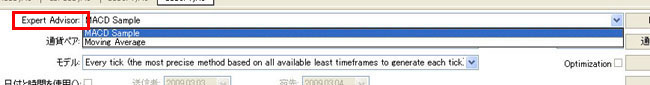 テスター画面の「Expert Advisor」で適当になにか選びます。