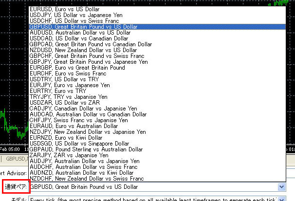 すぐ下の「通貨ペア」で検証したい通貨を選びます。
