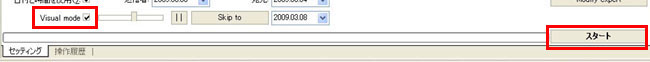 Visual modeにチェックを入れ、右側にある「スタート」をクリックすると、