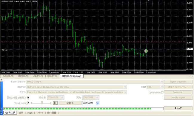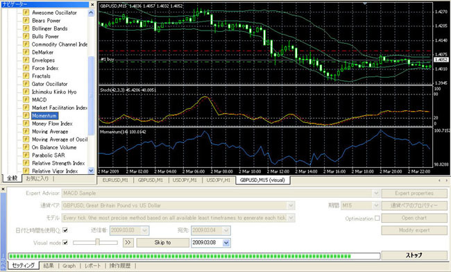 メタトレーダー4では、ビジュアルモードで休日に値動きを再現させることができます。