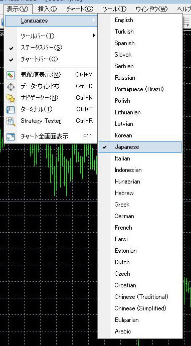 プルダウンメニュー→表示→Languages