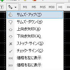 サムズ・アップ、サムズ・ダウン、上向き矢印、下向き矢印、ストップ・サイン、チェック・サイン、価格を左に表示、価格を右に表示