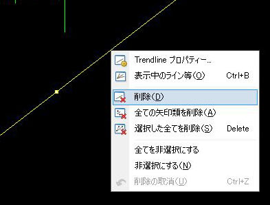 アクティブ状態になったラインの上で、マウスを右クリックし、削除を選びます。