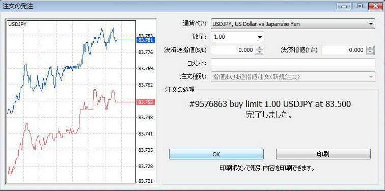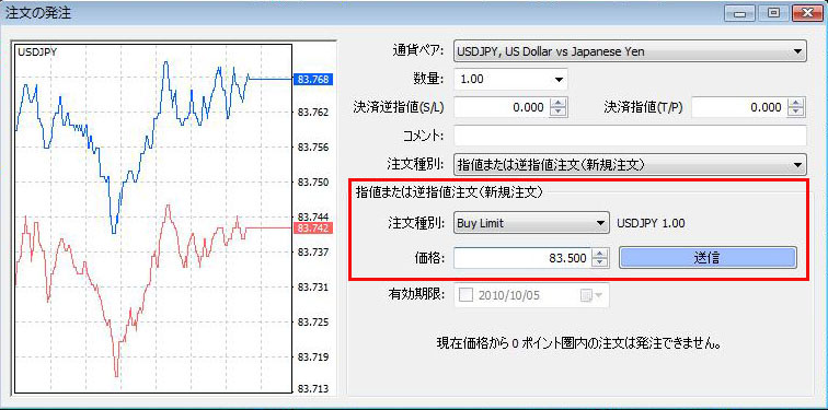 買いの場合は現在のプライスより低い価格を、売りの場合は現在のプライスより高い価格を入力します。