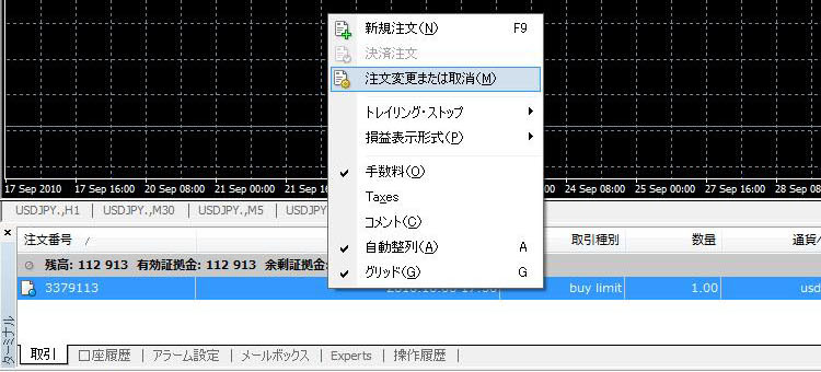 保持しているポジション一覧が表示されますので、変更したいポジションの上でマウスを右クリックします。