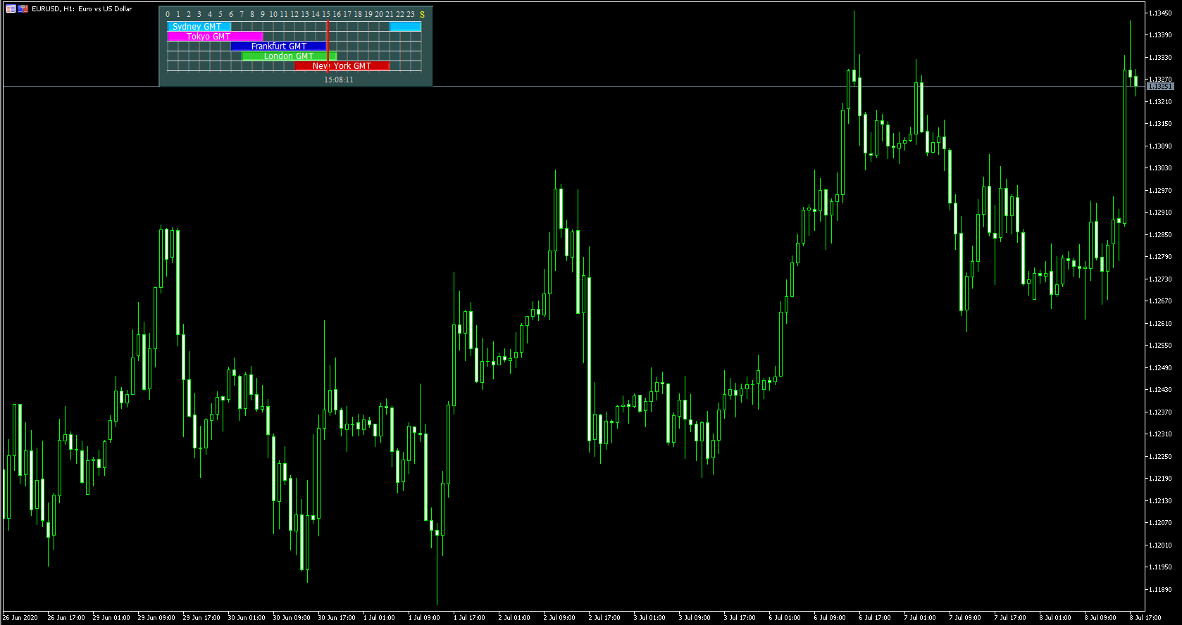FXのフリーのチャートソフト、メタトレーダー5 (MT5)にインディケーターを表示させた画像です。
