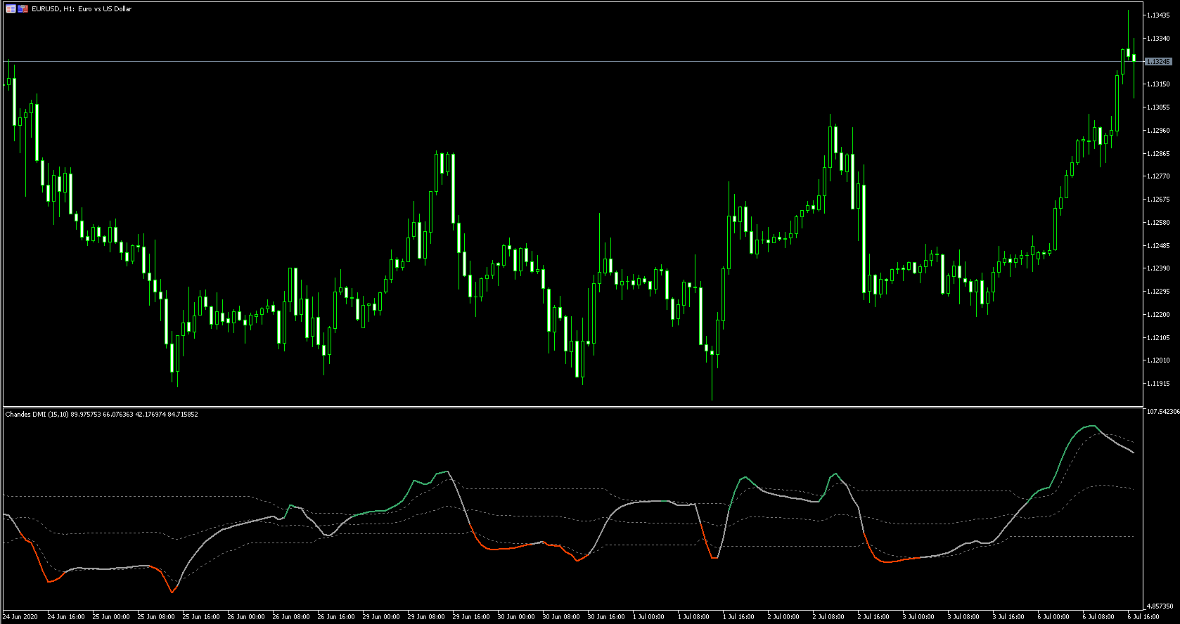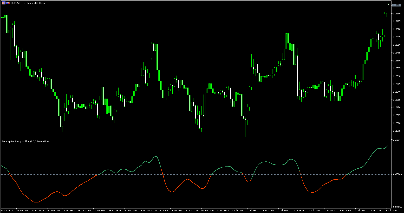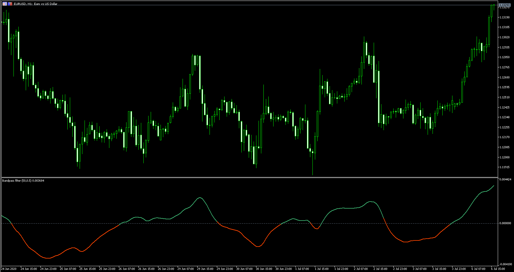 FXのフリーのチャートソフト、メタトレーダー5 (MT5)にインディケーターを表示させた画像です。