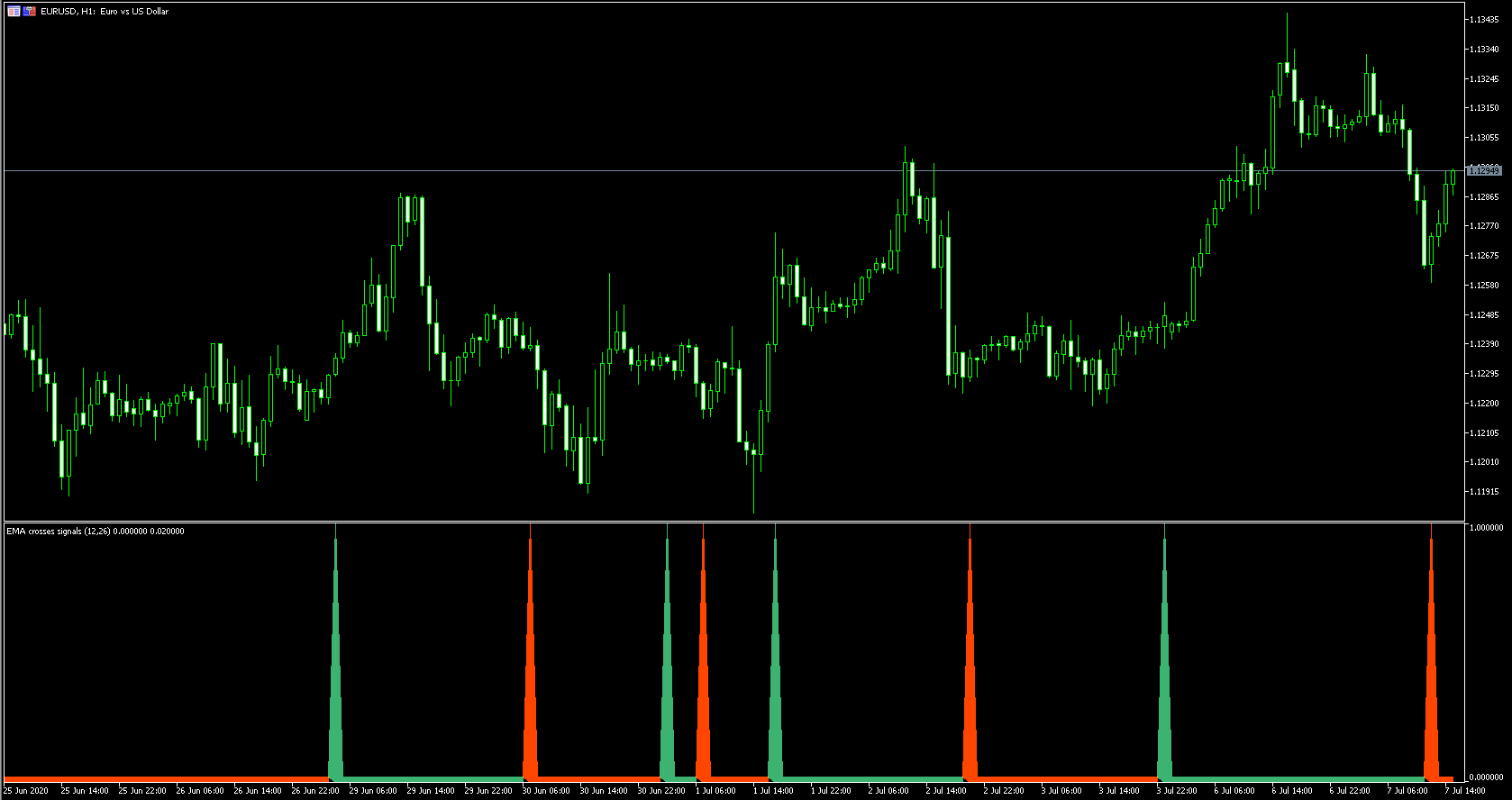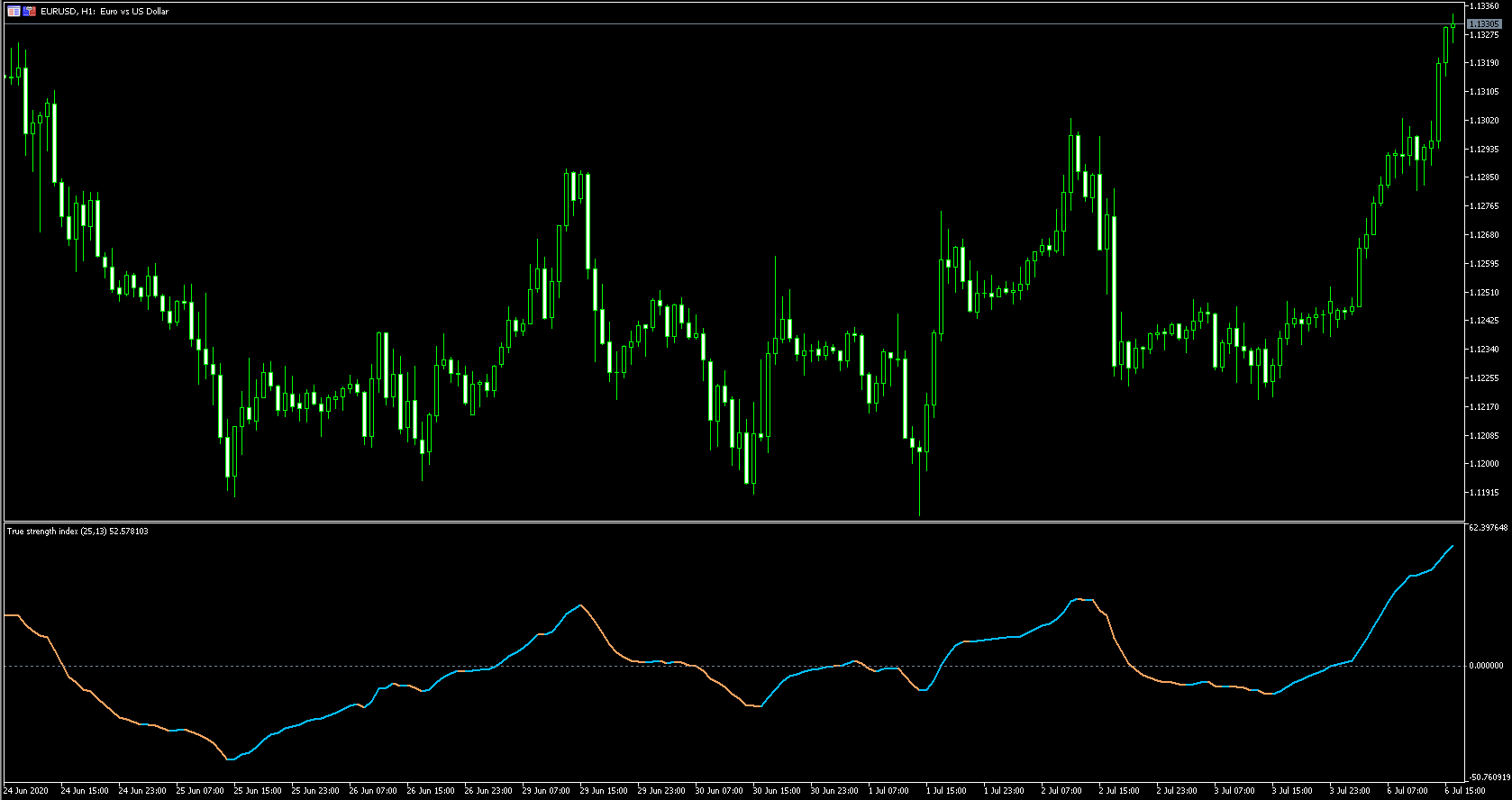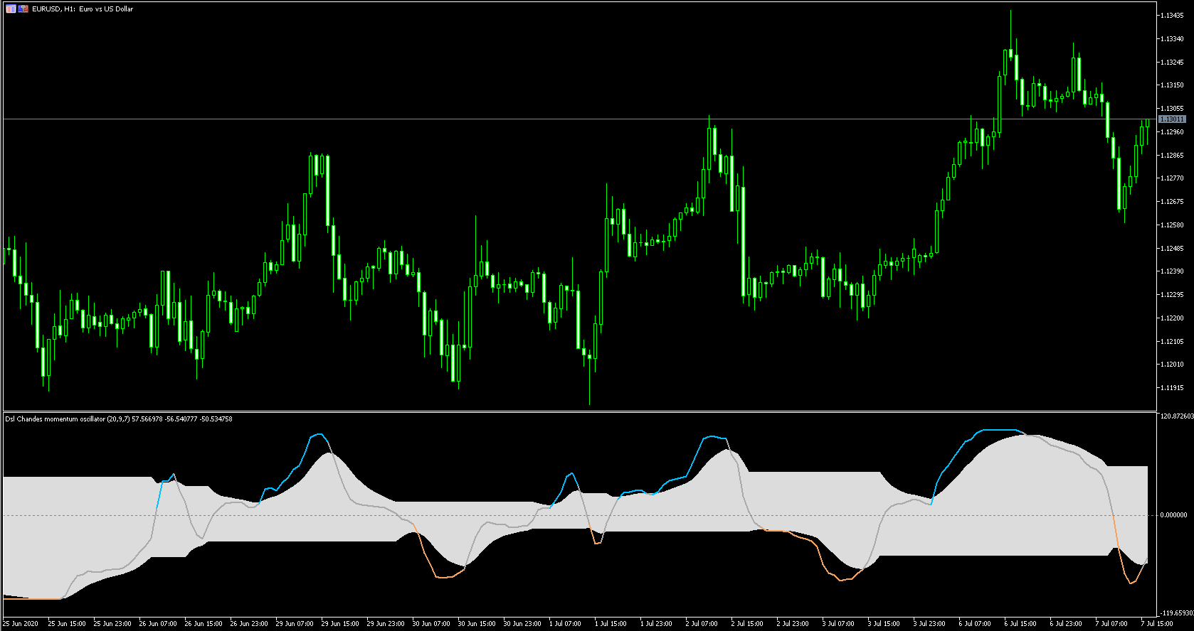 FXのフリーのチャートソフト、メタトレーダー5 (MT5)にインディケーターを表示させた画像です。
